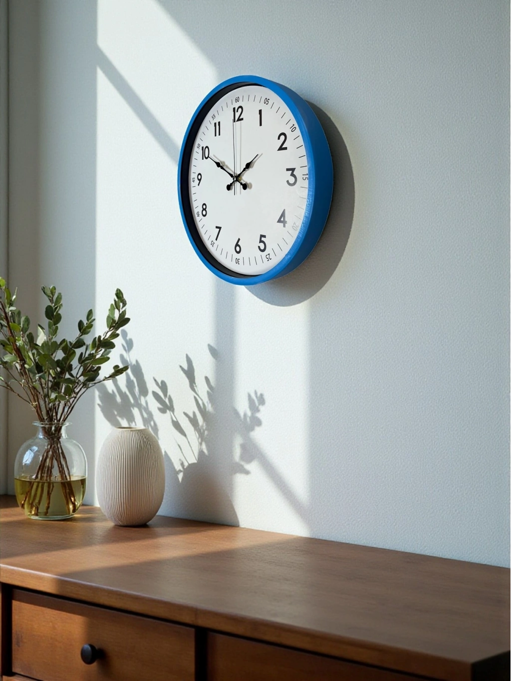 ÜRÜN AÇIKLAMASI Modern tasarımın enerjik renklerle buluştuğu bu 36 cm mavi duvar saati, ev ve ofis dekorasyonuna canlılık katmak isteyenler için ideal bir tercihtir.; Mavi çerçevesiyle ortama taze ve dinamik bir hava katan bu saat; sade beyaz kadranı, büyük siyah rakamları ve detaylı dakika göstergeleri (05, 10, 15..; ) ile yüksek okunabilirlik sunar.; Hem dekoratif hem fonksiyonel bir saat arayanlar için mükemmel bir üründür.; Saatin ön yüzeyinde kullanılan gerçek cam, uzun ömürlü kullanımın en önemli garantisidir.; Gerçek cam; plastik camlara göre çok daha dayanıklı olup çizilmeye karşı yüksek direnç sağlar, ışığı doğru kırarak kadranın her açıdan net görünmesini mümkün kılar.; Zamanla sararma veya matlaşma yapmadığı için ürün yıllarca premium görünümünü korur.; Temizliği ise son derece kolaydır.; Sessiz çalışan akar saniye (sweep) mekanizması, tıkırtı sesi olmadan akıcı bir hareket sağlar.; Bu özelliği sayesinde saat; yatak odası, ofis, çalışma odası, mutfak, kütüphane, çocuk odası ve sessizliğin önemli olduğu tüm yaşam alanları için uygundur.; Uzun süreli kullanımlarda bile rahatsızlık vermez.; Dayanıklı ve hafif plastik gövdesi kolayca monte edilebilir.; Canlı mavi çerçevesi; modern, genç, enerjik ve minimalist dekorasyon tarzlarıyla mükemmel bir uyum sağlar.; Ev dekorunda renkli bir tamamlayıcı arayanlar için oldukça ideal bir modeldir.;
