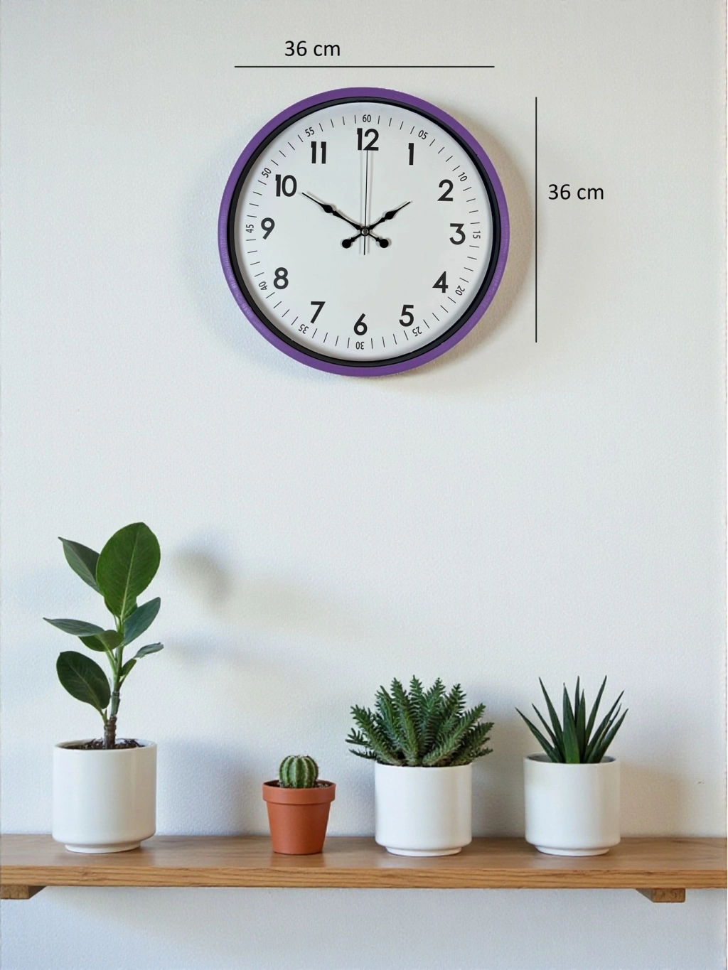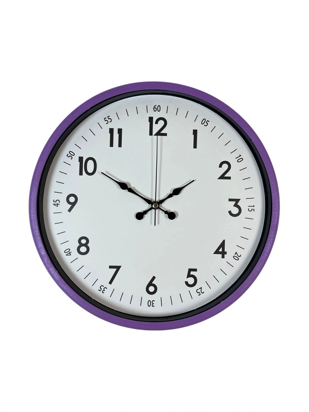 Modern çizgileri ve dikkat çekici mor çerçevesiyle bu 36 cm duvar saati, yaşam alanlarına hem enerji hem de estetik katan şık bir tasarımdır. Mor rengin zarif ve modern etkisi; salon, mutfak, ofis, genç odası, çalışma alanları veya dekoratif dokunuş isteyen tüm mekanlarda canlı bir atmosfer oluşturur. Büyük siyah rakamları ve sade beyaz zeminli kadranı sayesinde saat uzaktan dahi kolayca okunabilir.