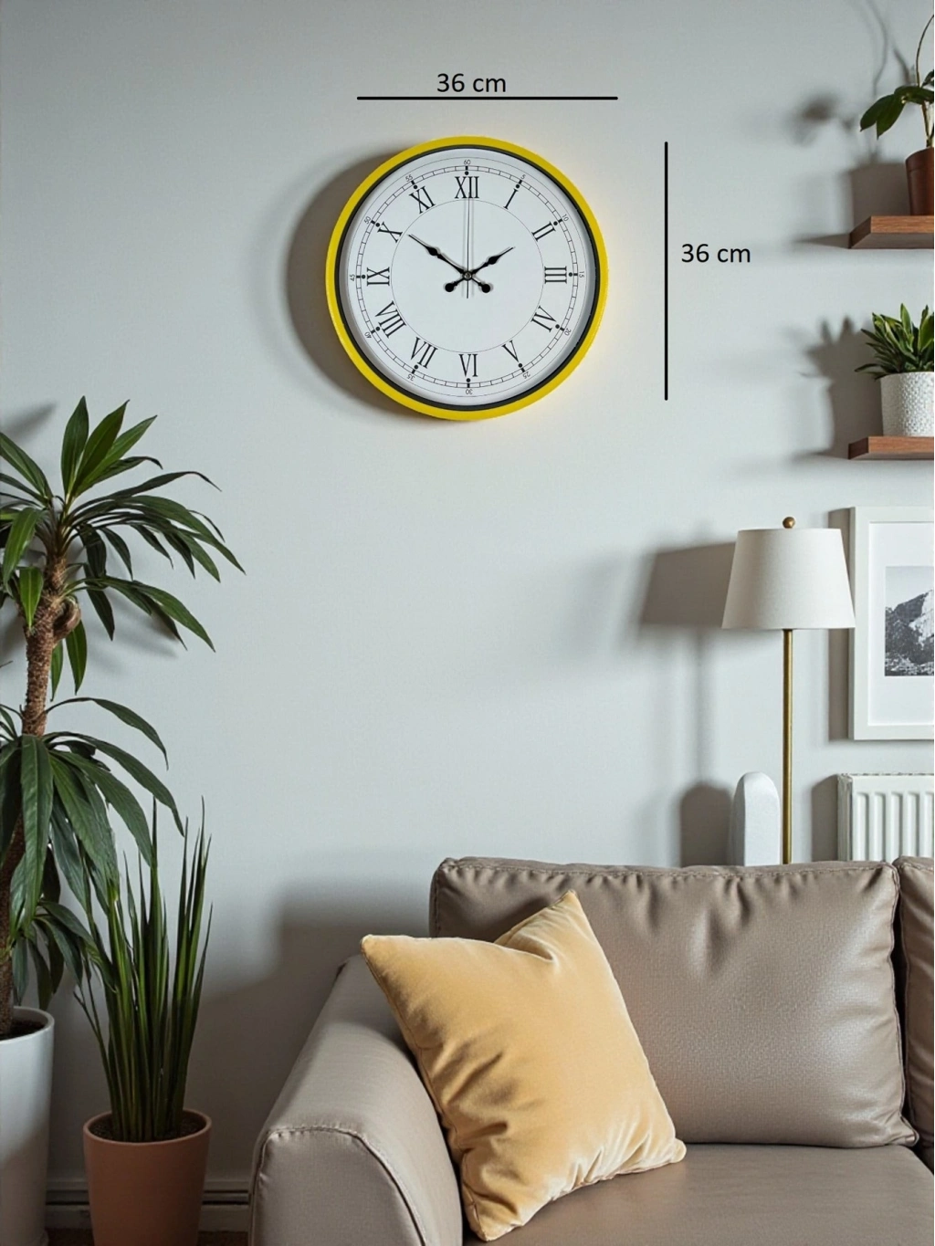 ® 36 Cm Sarı Dekoratif Duvar Saati