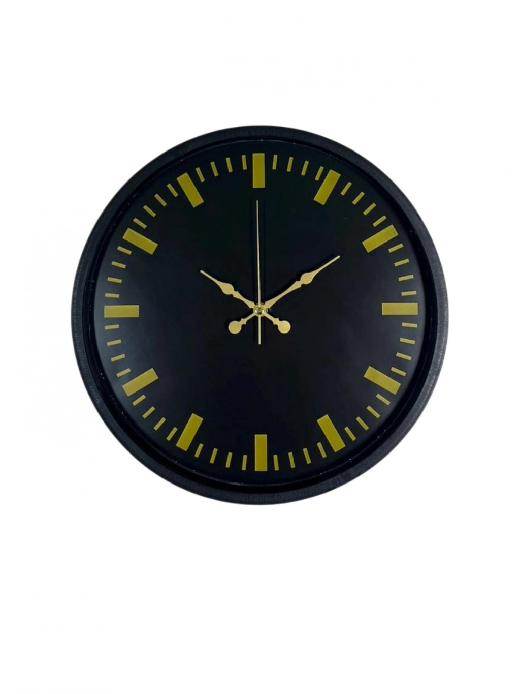 Rakam kullanılmadan tasarlanan çizgi indeksli kadranı ile bu 36 cm siyah duvar saati, modern dekorasyonun sade ve güçlü temsilcilerinden biridir. Mat siyah zemin üzerine yerleştirilen gold çizgi göstergeler, saatin okunurluğunu artırırken minimalist bir şıklık sunar.