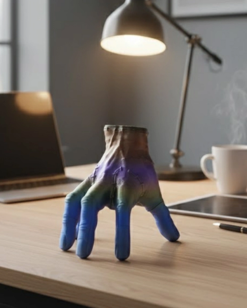 3D Tasarım Rengarenk El Biblo 27x22 cm, sıradan dekoratif ürünlerden farklı olarak güçlü ve dinamik bir görünüm sunar. Renk geçişli tasarımı ürünü eşsiz kılar.Geniş konsol ve sehpa üzerinde tek başına bile dekorasyonu tamamlayacak güce sahiptir.Ev, ofis ve konsept alanlarda rahatlıkla kullanılabilir.