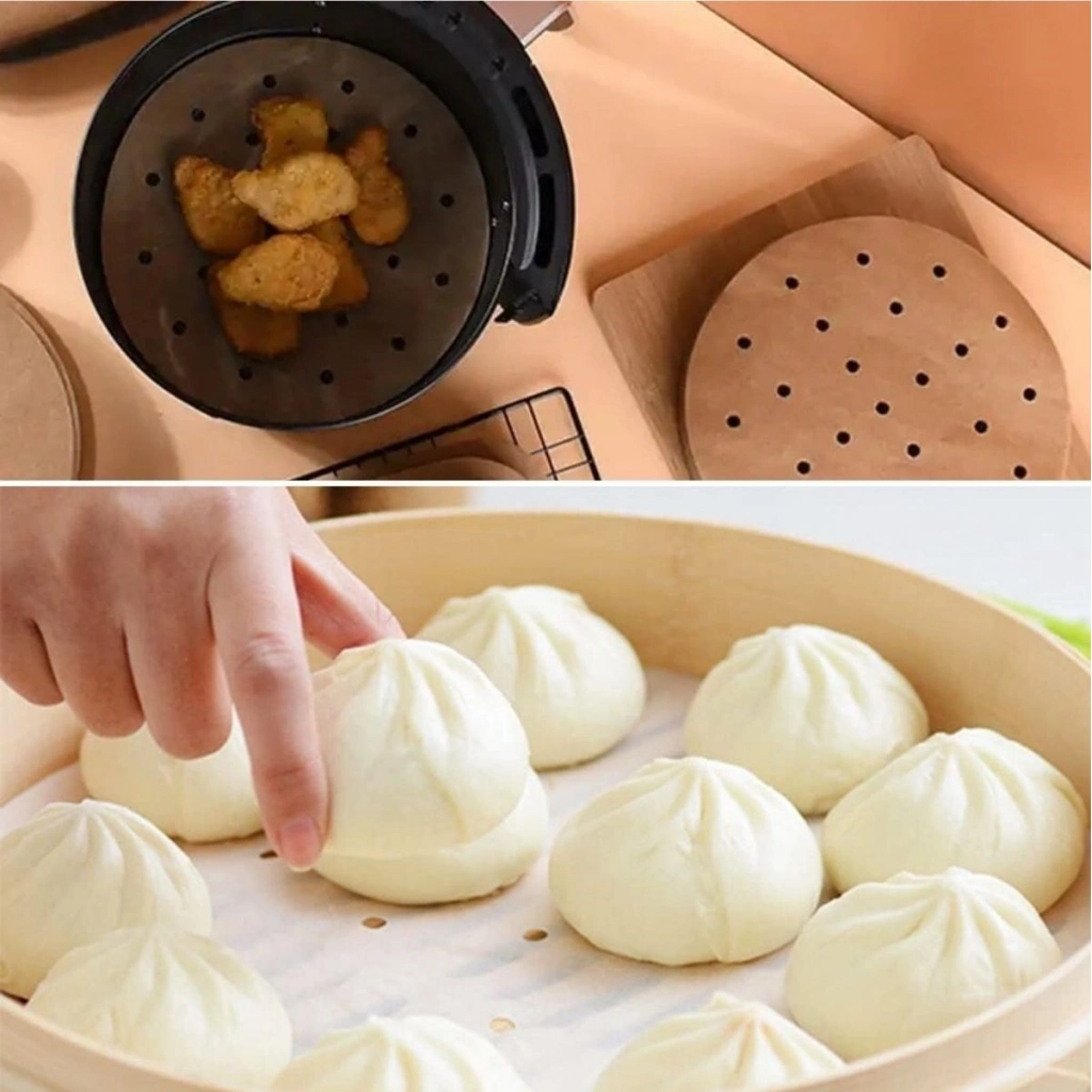 ® 50 Adet Air Fryer Pişirme Kağıdı Tek Kullanımlık Gıda Pişirme Kağıdı Delikli Yuvarlak Model