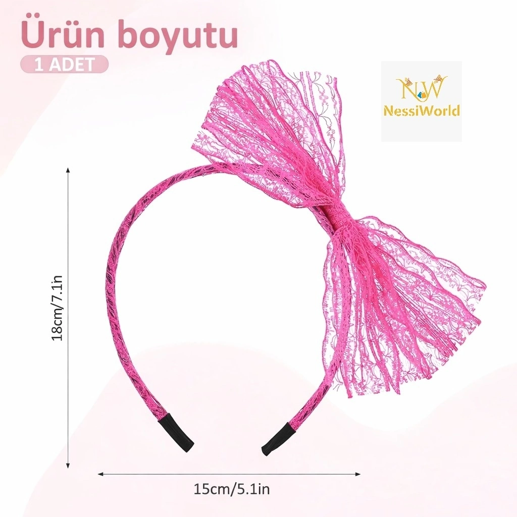 80’ler 90’lar Neon Pembe Dantel Taç Fiyonklu