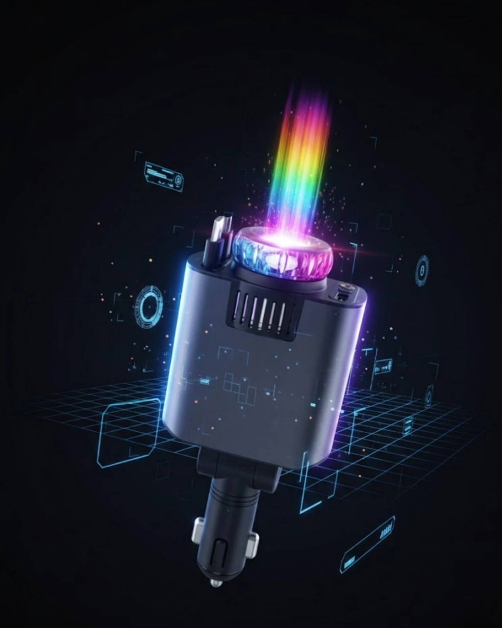 Araç Şarj Aleti Yıldız Tavan Işıklı Hava Nemlendirici Aroma Aparatı, araç içi teknolojiyi ileri seviyeye taşıyan çok amaçlı bir çözümdür. Şarj, nemlendirme, koku ve ışık fonksiyonlarını tek cihazda sunar.Şarj özelliği, farklı cihazlarla uyumlu olacak şekilde tasarlanmıştır. Güvenli ve stabil enerji aktarımı sağlar. Nemlendirici fonksiyonu, kuru havayı dengeler.Aromaterapi özelliği sayesinde araç içinde ferah bir atmosfer oluşur. Yıldız ışık efekti ise özellikle gece sürüşlerinde estetik bir ambiyans sunar.Kompakt yapısı sayesinde araç içinde yer kaplamaz. Kolay kurulum sunar ve günlük kullanımda pratiklik sağlar.