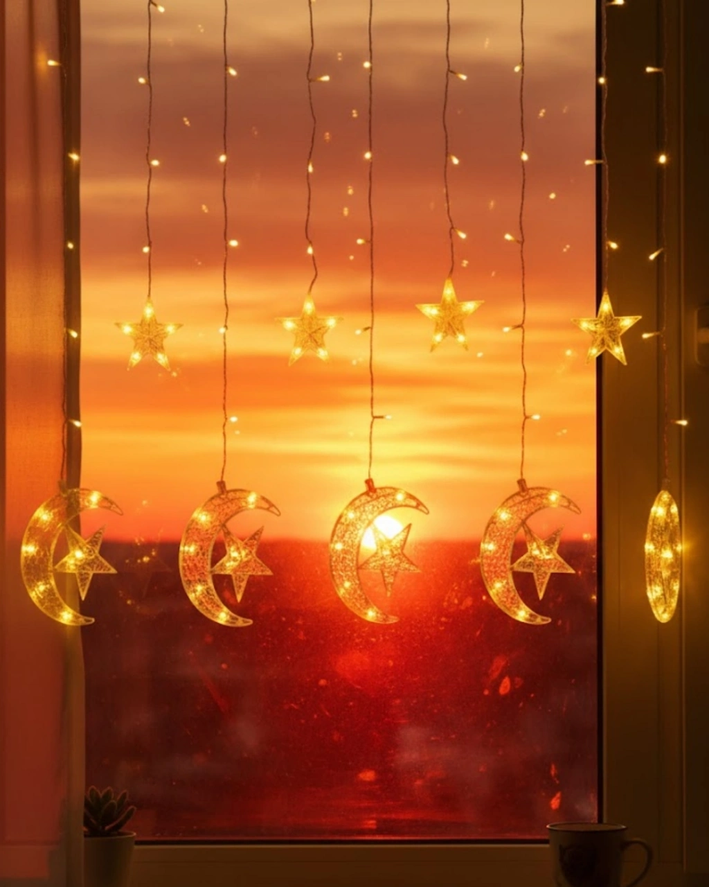 Hilal ve yıldız figürleri estetik bir bütünlük içinde tasarlanmıştır. Mekâna yerleştirildiğinde hem dekoratif hem işlevsel bir aydınlatma çözümü sunar.İki aydınlatma modu ile kullanım esnekliği sağlar. Sabit mod huzurlu bir ortam yaratırken, yanıp sönme modu daha canlı bir atmosfer oluşturur.Yüksek kaliteli malzeme yapısı ve güvenli kablo tasarımı sayesinde gönül rahatlığıyla kullanılabilir. İç mekân dekorasyonunda güçlü bir tamamlayıcı üründür.