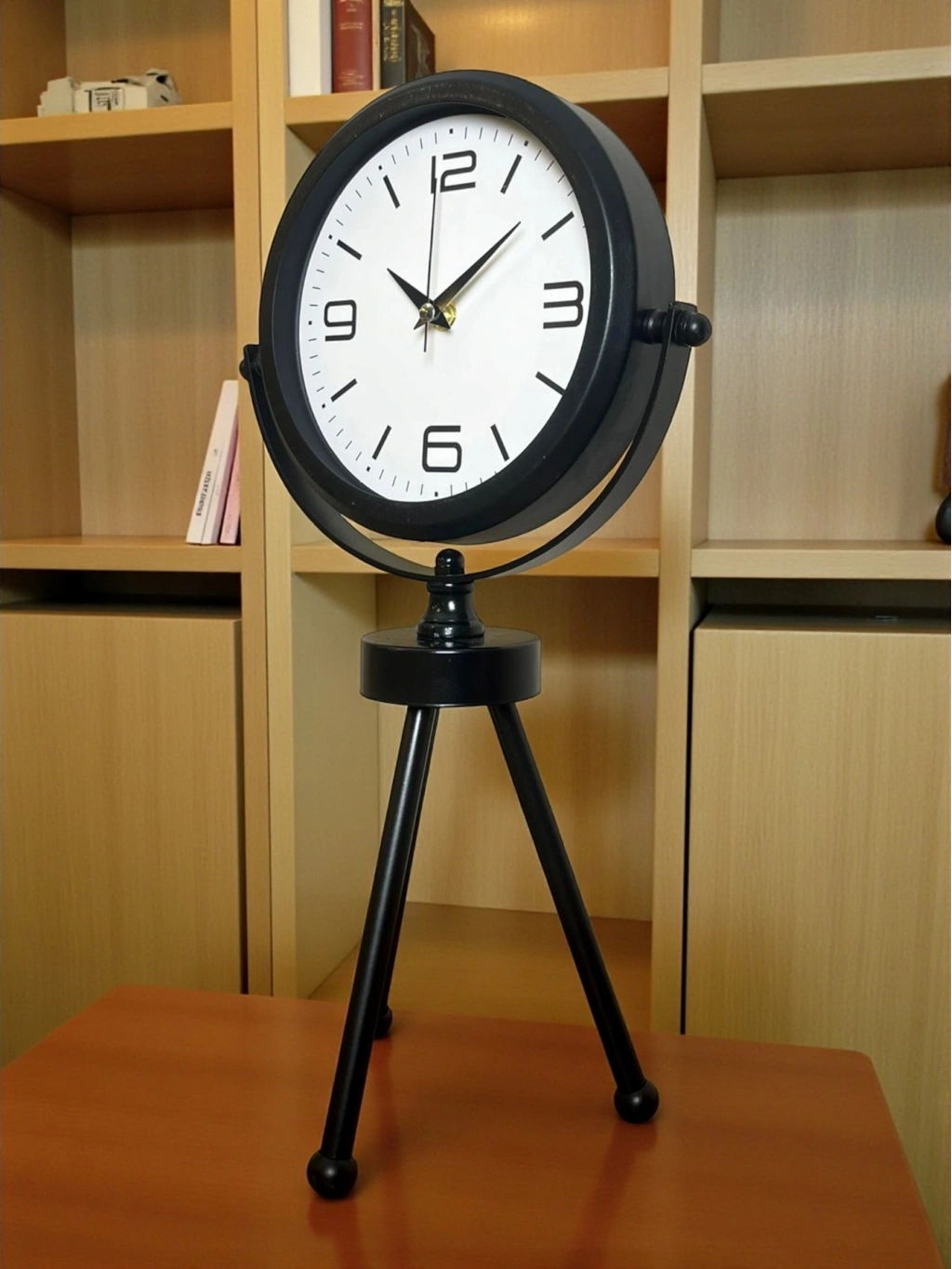 ® Black Elegant Metal Üç Ayaklı Masa Saati