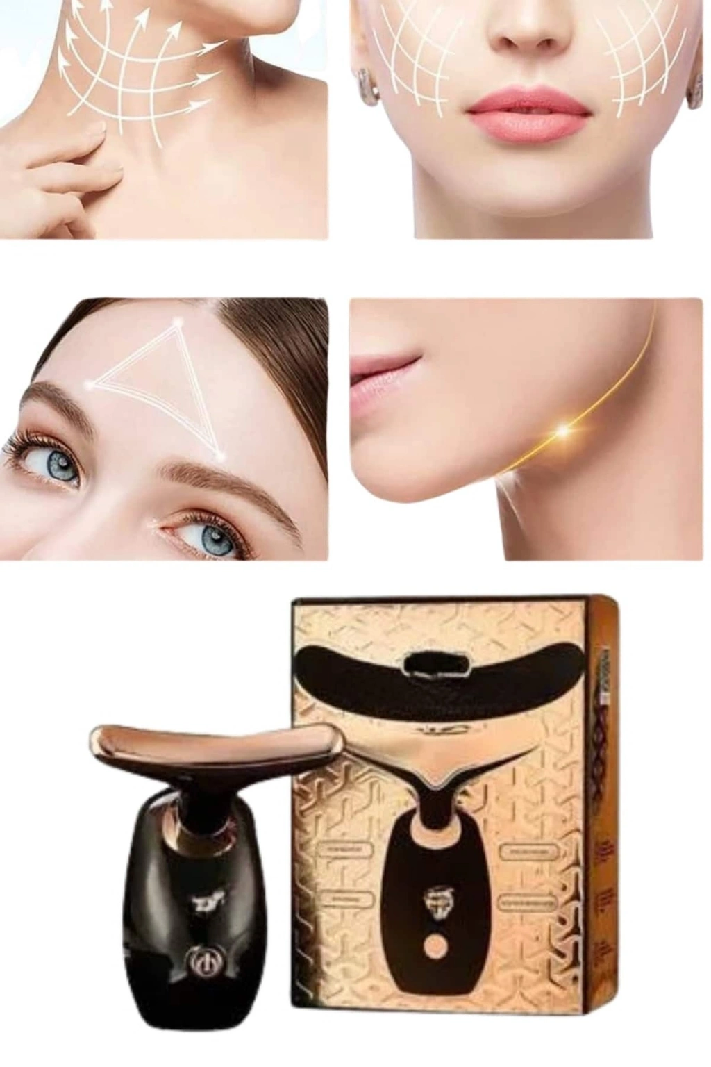 Bu yenilikçi boyun bakım cihazı, cilt sağlığınızı ve kas rahatlığınızı aynı anda destekleyerek günlük bakım rutininizi ileri bir seviyeye taşır. Dakikada 7000 kez gerçekleşen yüksek frekanslı ses dalgası titreşimleri sayesinde, boyun bölgesindeki meridyenler etkin şekilde uyarılır ve kas gerginliği azalır. Bu sayede, gün içinde biriken stres ve sertlik hissi hafiflerken, kas canlılığı da korunur.Besin infüzyon teknolojisi, kullanılan boyun kremi veya maskesinin (ürünle birlikte verilmemektedir) iyonize edilerek daha küçük parçalara ayrılmasını sağlar ve cilt tarafından daha hızlı ve derinlemesine emilmesini mümkün kılar. Ergonomik yunus formundaki 160° kavisli tasarımı ise boyun bölgesine tam uyum sağlayarak rahat ve etkili bir temas sunar.Cihaz, 45°C sıcaklıkta manyetik ısı terapisi sunarken, renkli ışık teknolojisiyle birlikte kan dolaşımını hızlandırır, cilt dokusunu canlandırır ve cildin daha sıkı ve pürüzsüz görünmesine katkı sağlar. Üç farklı mod seçeneği ile cihazınızı ihtiyacınıza göre kişiselleştirebilirsiniz: temizleme ve parlatma modu, elektrikli kas stimülasyonu modu veya ısıtma ve nemlendirme modu.Kompakt boyutları ve taşınabilirliği ile her an yanınızda taşıyabileceğiniz bu güzellik cihazı, paket içeriğinde yer alan şarj kablosu ile kolayca şarj edilir. Günlük bakımınıza profesyonel bir dokunuş katmak için ideal bir tercihtir.