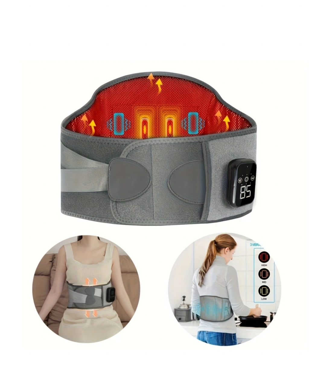 Sıcaklık ve titreşim kombinasyonu sunan bu bel kemeri, konfor odaklı tasarlanmıştır. Üç farklı ısı seviyesi ile kontrollü kullanım sağlar.Masaj modları farklı yoğunluk seçenekleri sunar. Ergonomik yapısı sayesinde bel bölgesine tam oturur.Kablosuz kullanım ve USB şarj desteği ile pratik bir deneyim sunar.2000mAh batarya kapasitesi ile uzun süreli kullanım sağlar. Otomatik kapanma özelliği ile güvenli kullanım sunar.