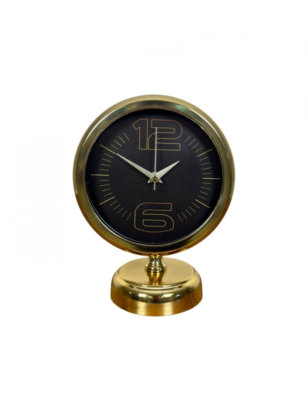 Dekorasyonda güçlü bir etki yaratmak isteyenler için tasarlanan bu siyah kadranlı gold masa saati, modern çizgileriyle dikkat çekerken gold gövdesiyle ortama premium bir şıklık kazandırır. Minimal ve güçlü tasarımı sayesinde hem ev hem ofis kullanımına uygundur; çalışma masanızda profesyonel bir atmosfer oluşturur, salon konsolunda ise dekoru tamamlayan zarif bir aksesuar gibi durur.