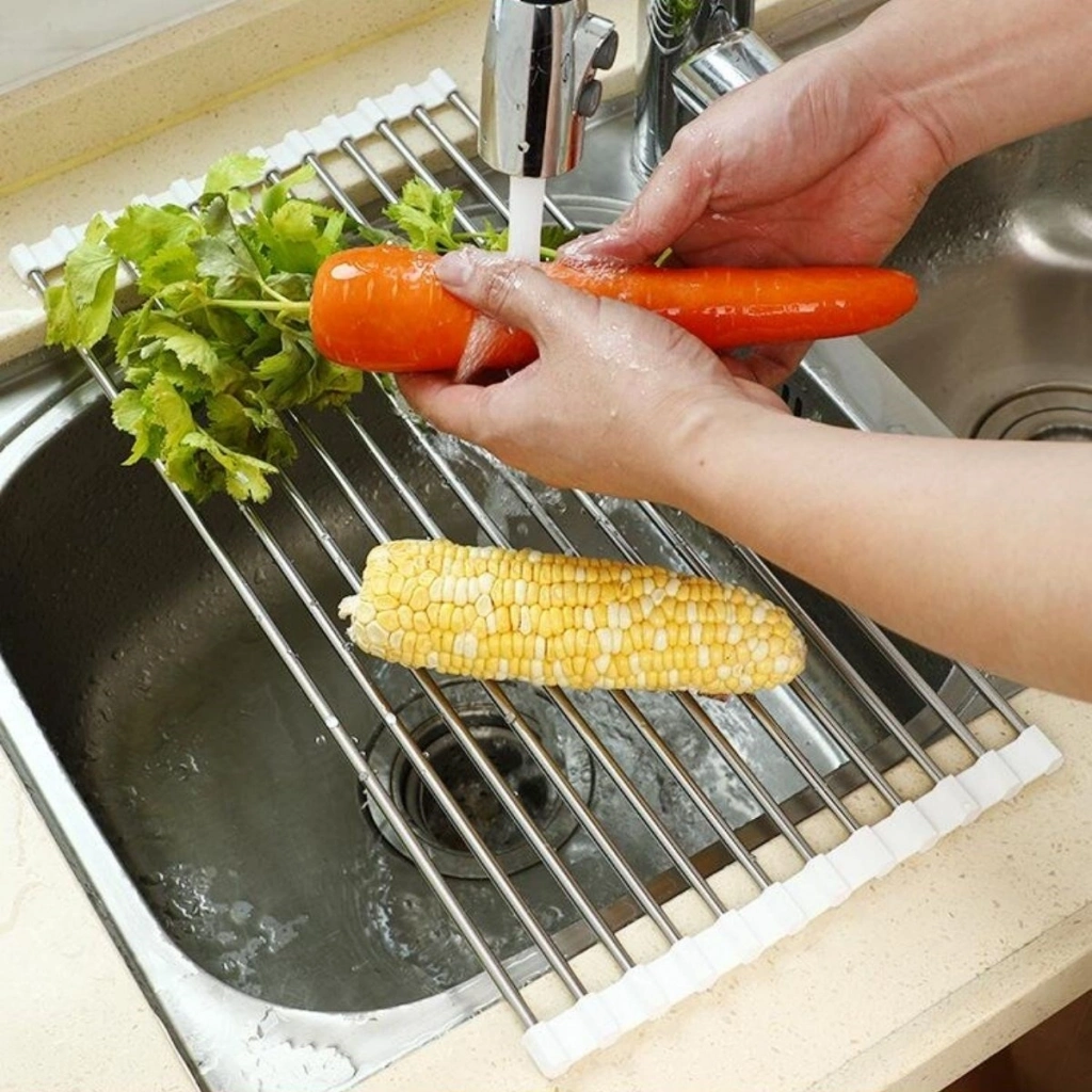 Evye Üstü Katlanır Nihale Paslanmaz Çelik Pratik Sebze Meyve Bulaşık Kurutma Süzgeci