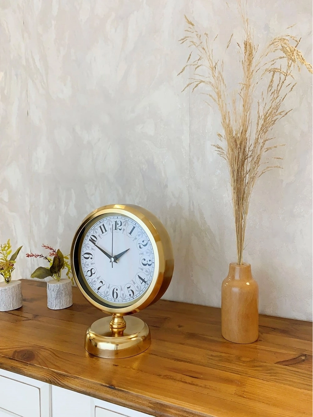 Şık ve modern tasarımıyla dikkat çeken gold kaplama masa saatimiz, sessiz akar saniye mekanizmasıyla konforlu bir kullanım sunar. Gerçek cam koruma paneli sayesinde uzun ömürlü ve dayanıklıdır. Estetik görünümüyle hem ev hem de iş yerleri için ideal bir dekoratif üründür.