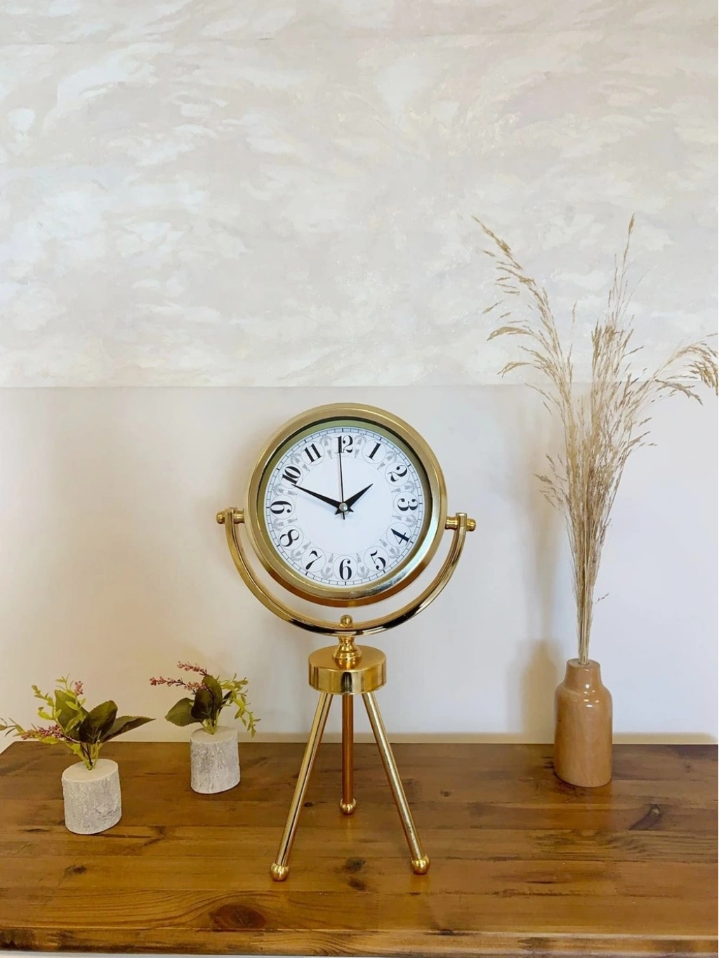 ® Gold Metal Mini Tripod Desenli Masa Saati 45×26 cm
