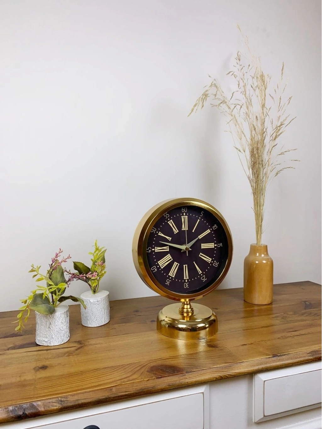 Şık ve modern tasarımıyla dikkat çeken gold kaplama masa saatimiz, sessiz akar saniye mekanizmasıyla konforlu bir kullanım sunar. Gerçek cam koruma paneli sayesinde uzun ömürlü ve dayanıklıdır. Estetik görünümüyle hem ev hem de iş yerleri için ideal bir dekoratif üründür.