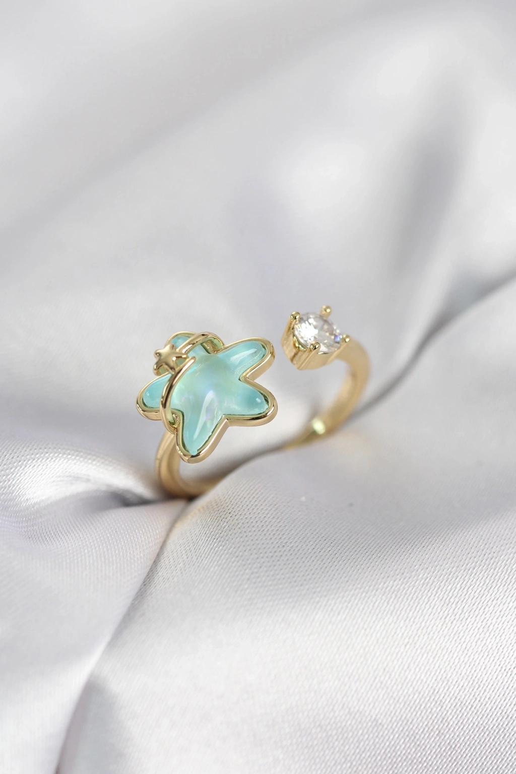 ® Gold Renk Turkuaz Yıldız Model Kadın Yüzük