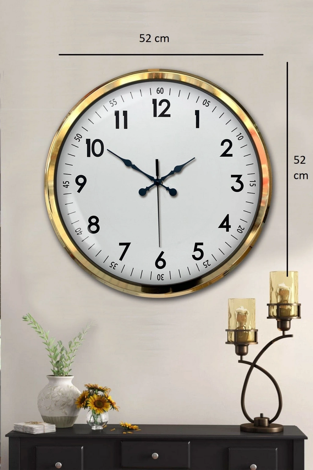 ® Gold & White Luxury Classic 52 Cm Metal Duvar Saati