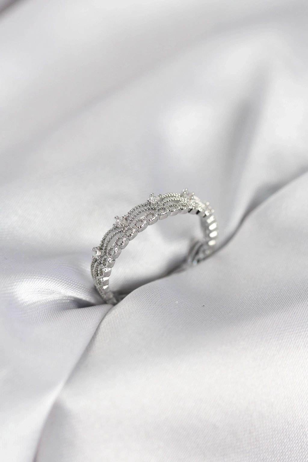 ® Gümüş Renk Motif Desenli Zirkon Taşlı Kadın Yüzük