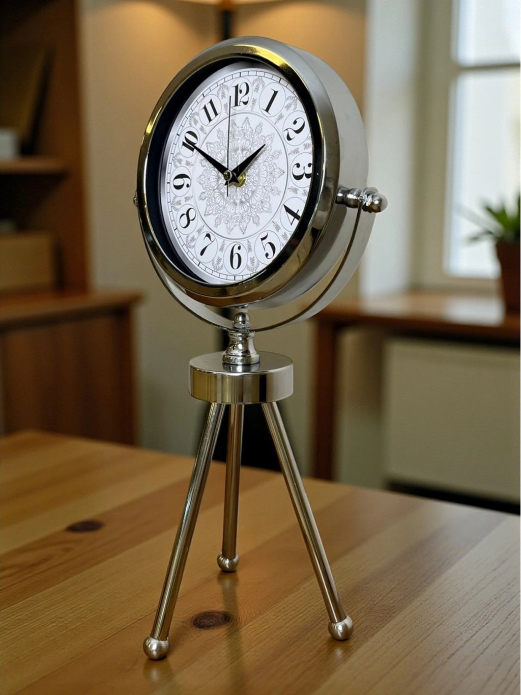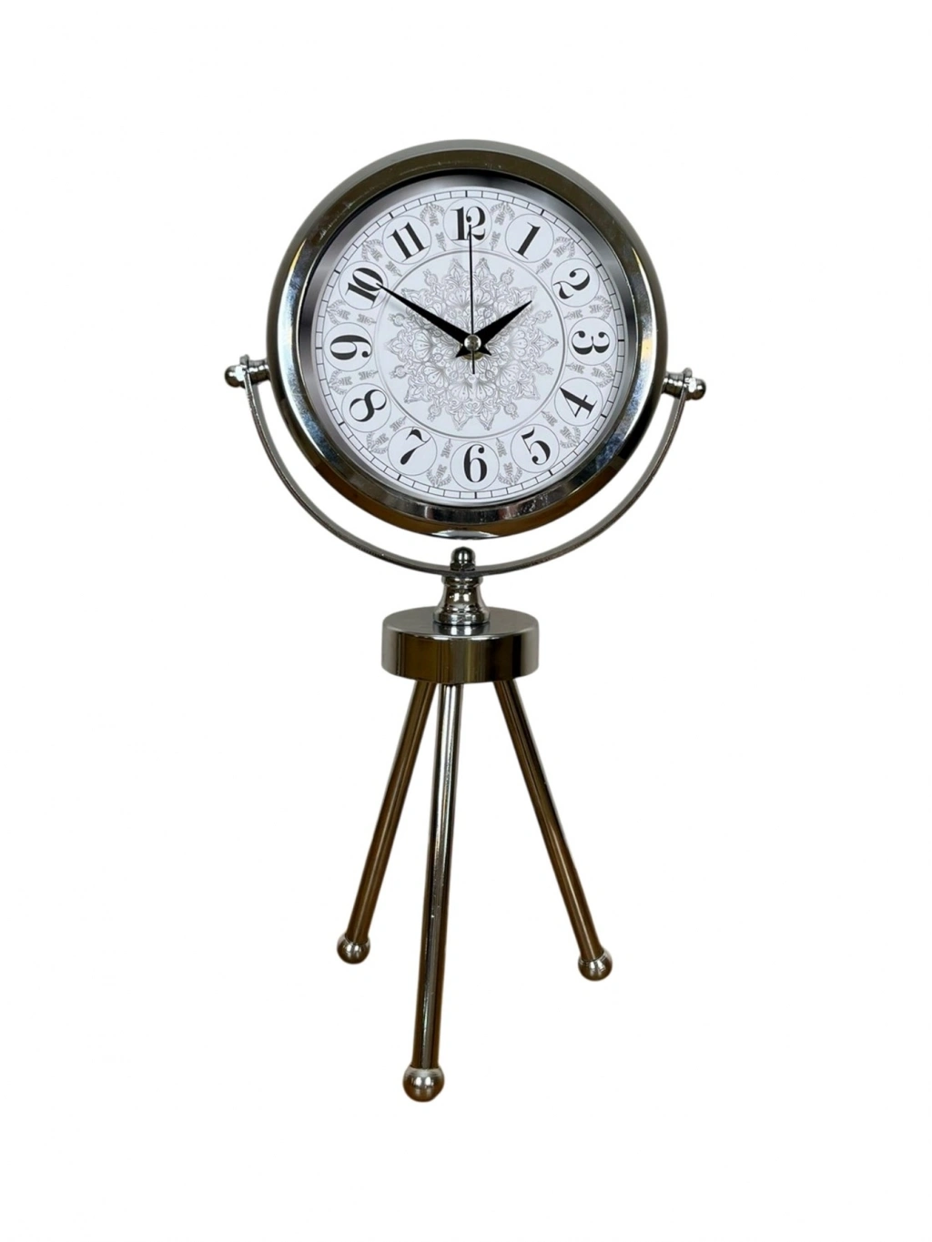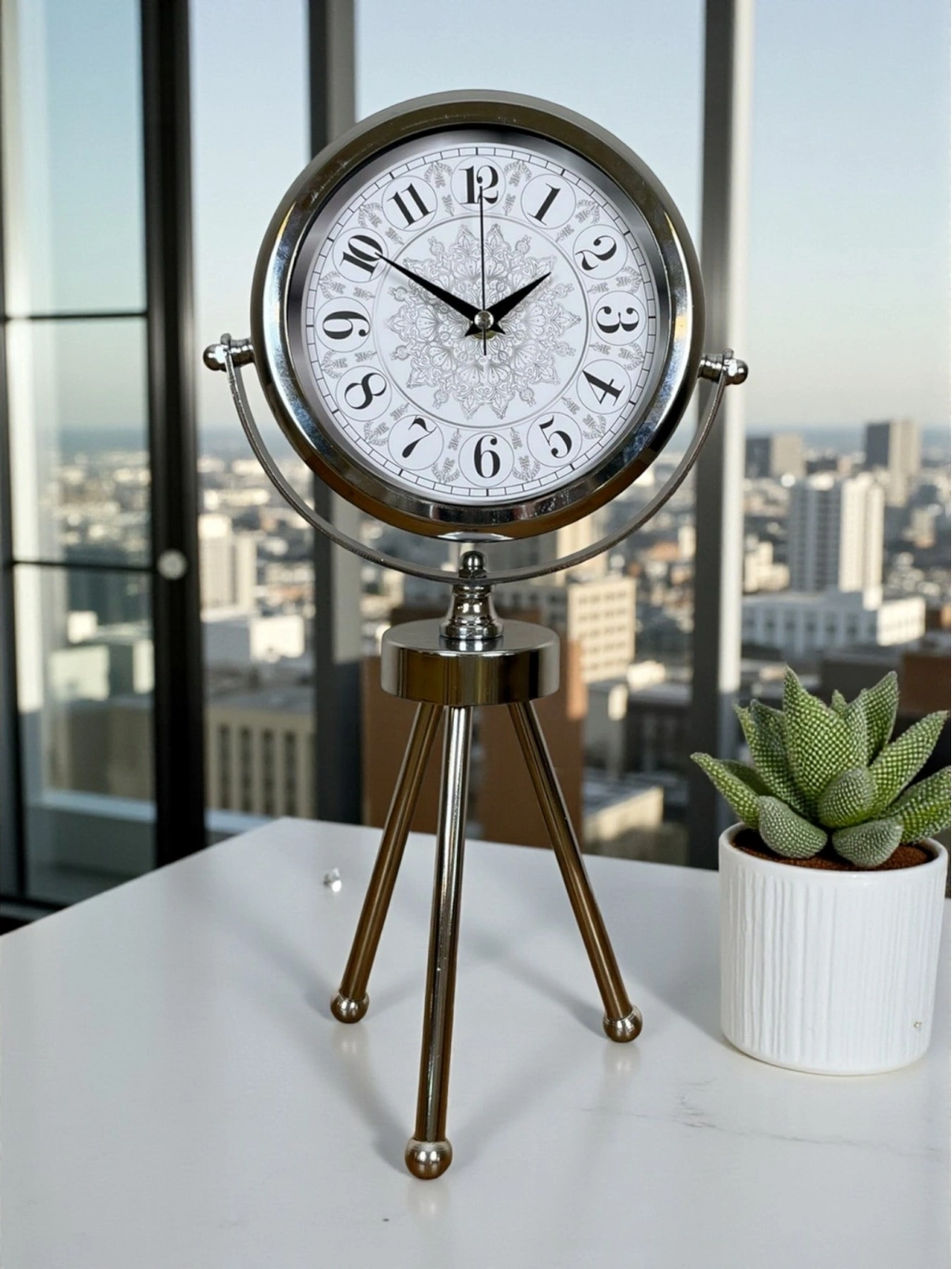 ® Krom Motif Tasarım Üç Ayaklı Metal Masa Saati