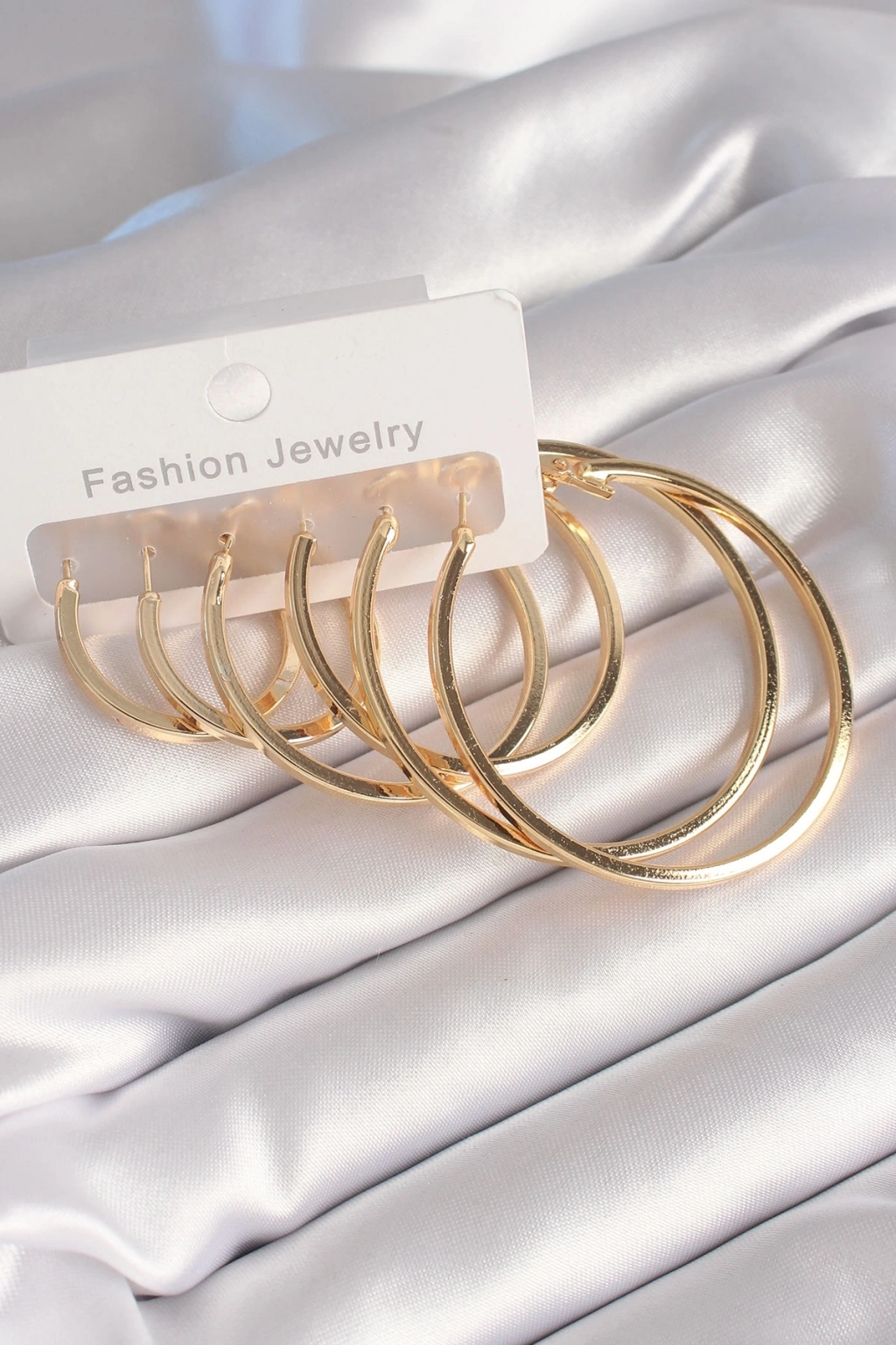 Pirinç Gold Renk Halka Model Kadın Küpe Seti