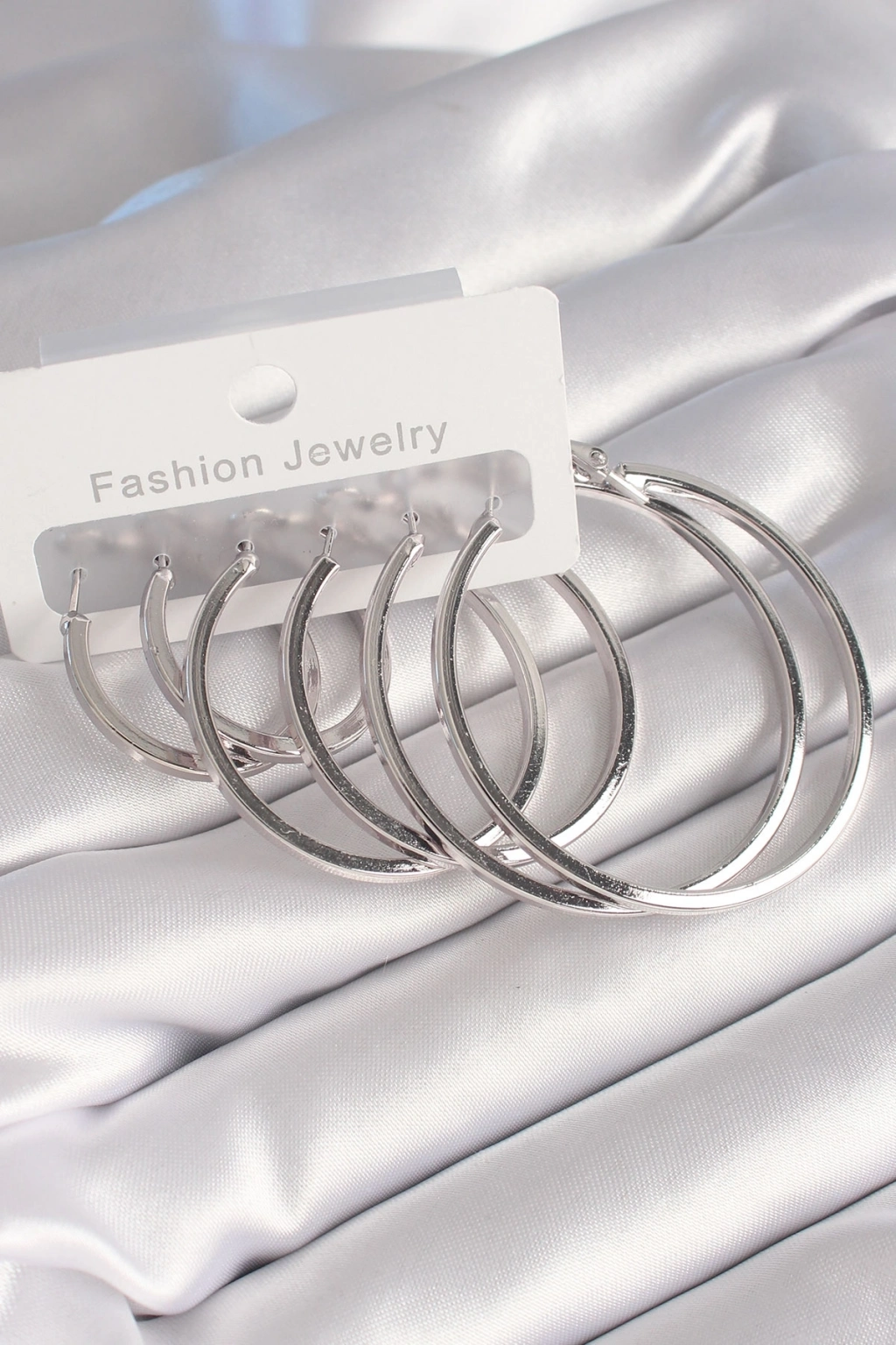 Pirinç Gümüş Renk Halka Model Kadın Küpe Seti