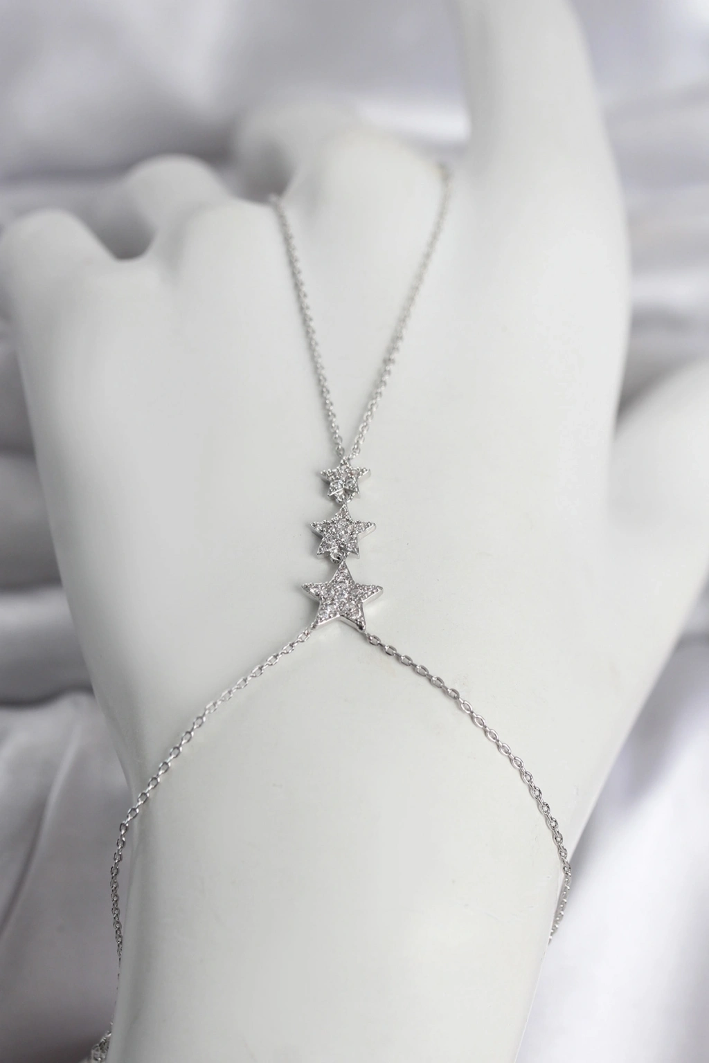 Pirinç Gümüş Renk Sıralı Yıldız Model Kadın Şahmeran