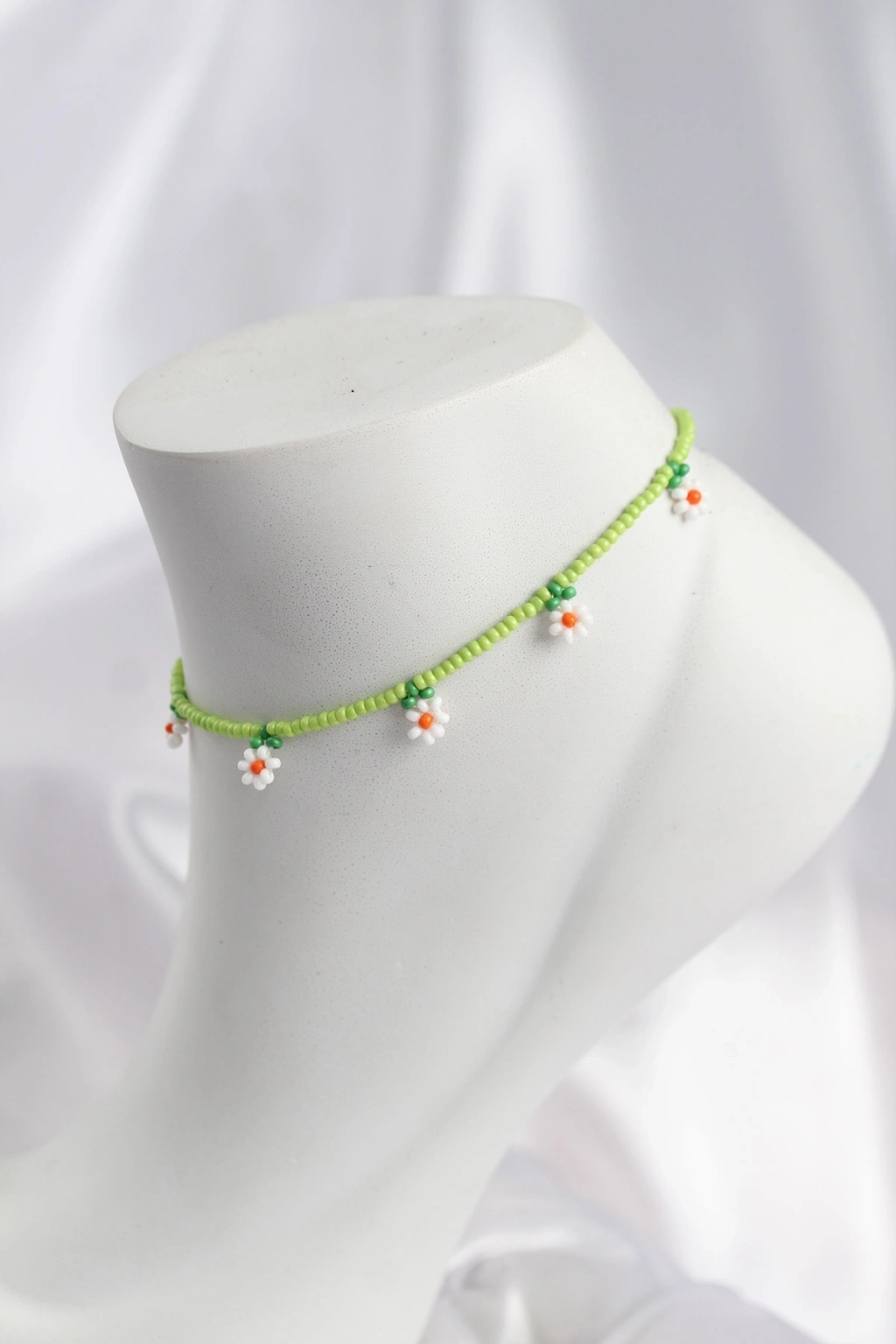 Yeşil Renk Boncuklu Papatya Motifli Halhal
