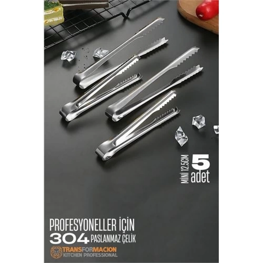 Kitchen Professional - 304 Paslanmaz Çelik Buz Maşası (5 Adet, 12.5 cm)