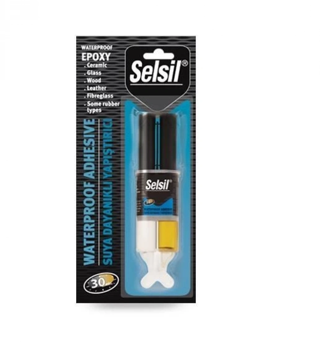 Selsil Epoksi 5 dak. hızlı sertleşen iki bileşenli bir epoksi yapıştırıcıdır. Aluminyum,cam,porselen,seramik vb. yüzeylerin yapıştırılması ve tamirinde,deniz araçlarında,otomobillerde,karavanlarda,su borularında her türlü onarım gerektiren mobilya gibi ev eşyaşarının tamirinde,metal yüzeylerin yapıştırılmasında kullanılabilir. (PP,PE ve teflon yüzeyler için uygun değildir.)