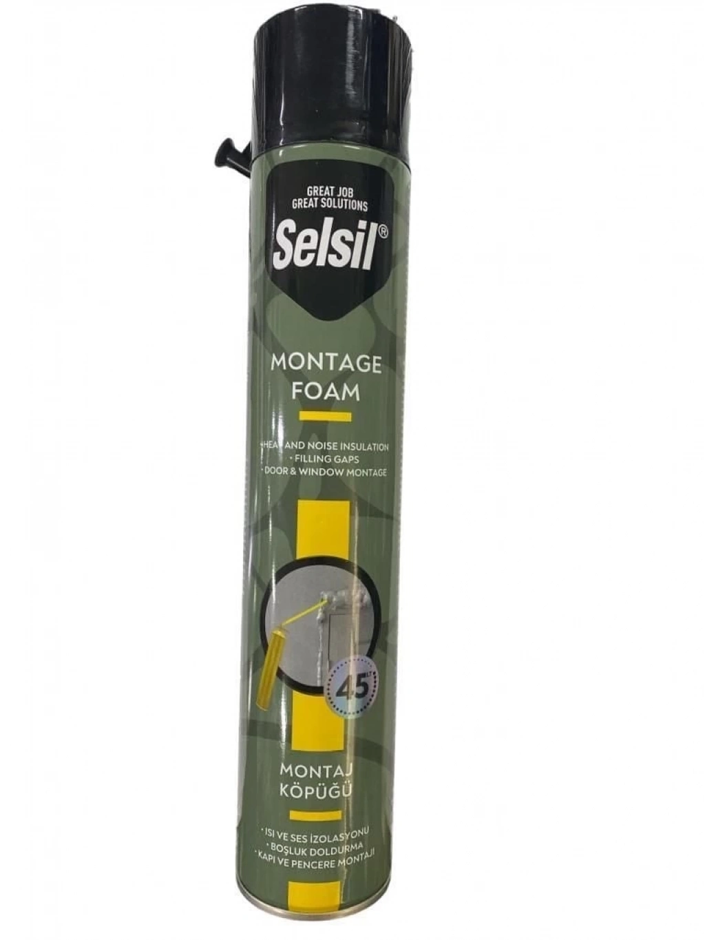 Selsil Montaj Köpüğü, poliüretan bazlı havanın nemiyle sertleşen tek komponentli bir dolgu, yalıtım malzemedir.