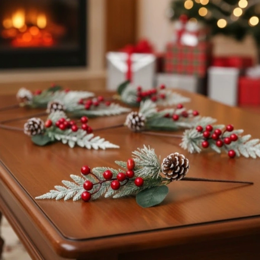 • DEKORATİF KOZALAKLI YAPAY KOKİNAÜrün ÖzellikleriDekoratif kozalaklı yapay kokina, yılbaşı konseptli dekorasyonlara sıcak ve doğal bir hava katmak için tasarlanmış şık bir süsleme ürünüdür. 35 cm boyundaki yapısı sayesinde kapı süslerinde, çam ağacı dekorlarında, masa düzenlemelerinde, hediye paketlemelerinde ve çeşitli craft çalışmalarında rahatlıkla kullanılabilir. Gerçek dokulu yaprakları, kırmızı meyve detayları ve kozalak süslemesi sayesinde oldukça estetik bir görünüm sunar. Dayanıklı yapay malzemeden