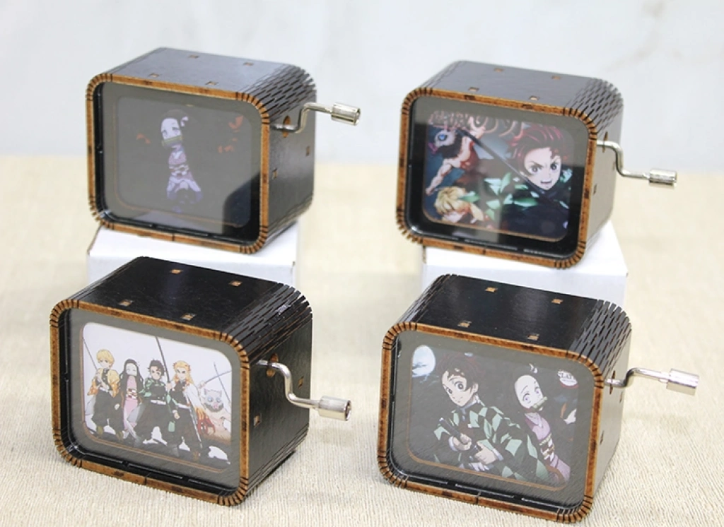 DEMON SLAYER MÜZİK KUTUSUÜrün ÖzellikleriDemon Slayer temalı bu müzik kutusu, sevilen anime karakterlerinin görselleriyle süslenmiş özel bir tasarıma sahiptir. 6x6 cm boyutundaki kompakt yapısı sayesinde dekoratif olarak kullanılabilir veya sergimizluk olarak saklanabilir. Mekanik kurmalı mekanizması ile nostaljik bir melodi çalar. Ahşap dış yüzeyi ve lazer kesim detaylarıyla hem estetik hem dayanıklı bir yapıya sahiptir. Anime tutkunları için ideal bir hediye seçeneğidir.Paket İçeriği1 adet Demon Slayer temalı müzik kutusu