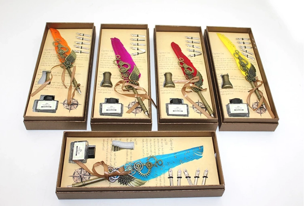 DIVIT HOKKA SETİ MODEL 2Ürün ÖzellikleriDivit Hokka Seti Model 2, renkli tüy ve zarif işlemeli tasarımıyla hem estetik hem de işlevsel bir yazı setidir. Tüy divit, ince işlemeleri ve renkli tüyüyle yazı yazmayı keyifli bir hale getirirken, hokka, mürekkebinizi zarif bir şekilde saklamanızı sağlar. Setin nostaljik ve zarif tasarımı, hem geleneksel yazı sanatlarına meraklı olanlar hem de özel hediye arayanlar için idealdir. Dekoratif ve işlevsel kombinasyonuyla masa üstünde de hoş bir görüntü sunar.Not: Ürün farklı renklerde mevcuttur ve var olan renk gönderim yapılmaktadır.Paket İçeriği1 adet Divit Hokka Seti Model 2