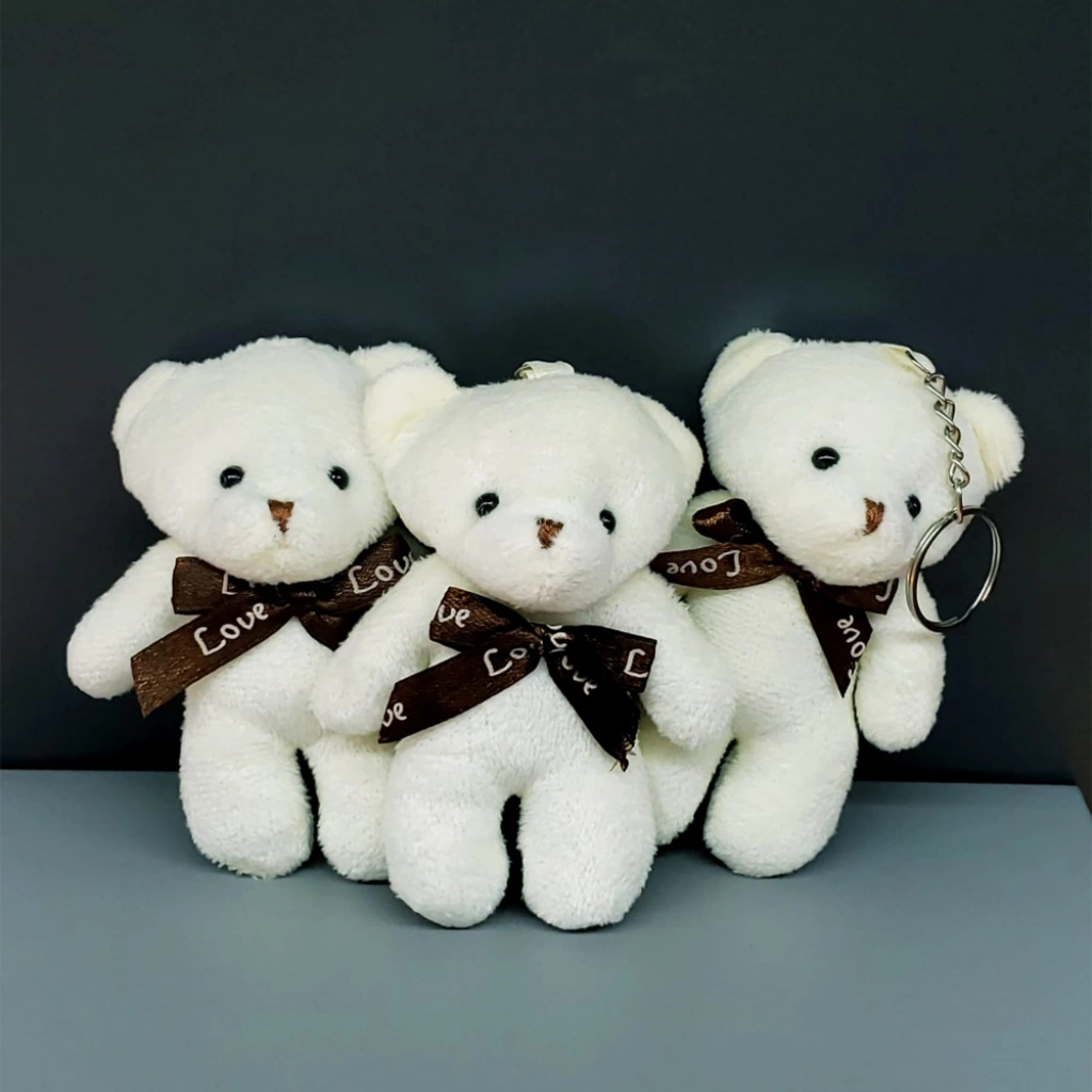 Fiyonklu Krem Renk Ayıcık Anahtarlık