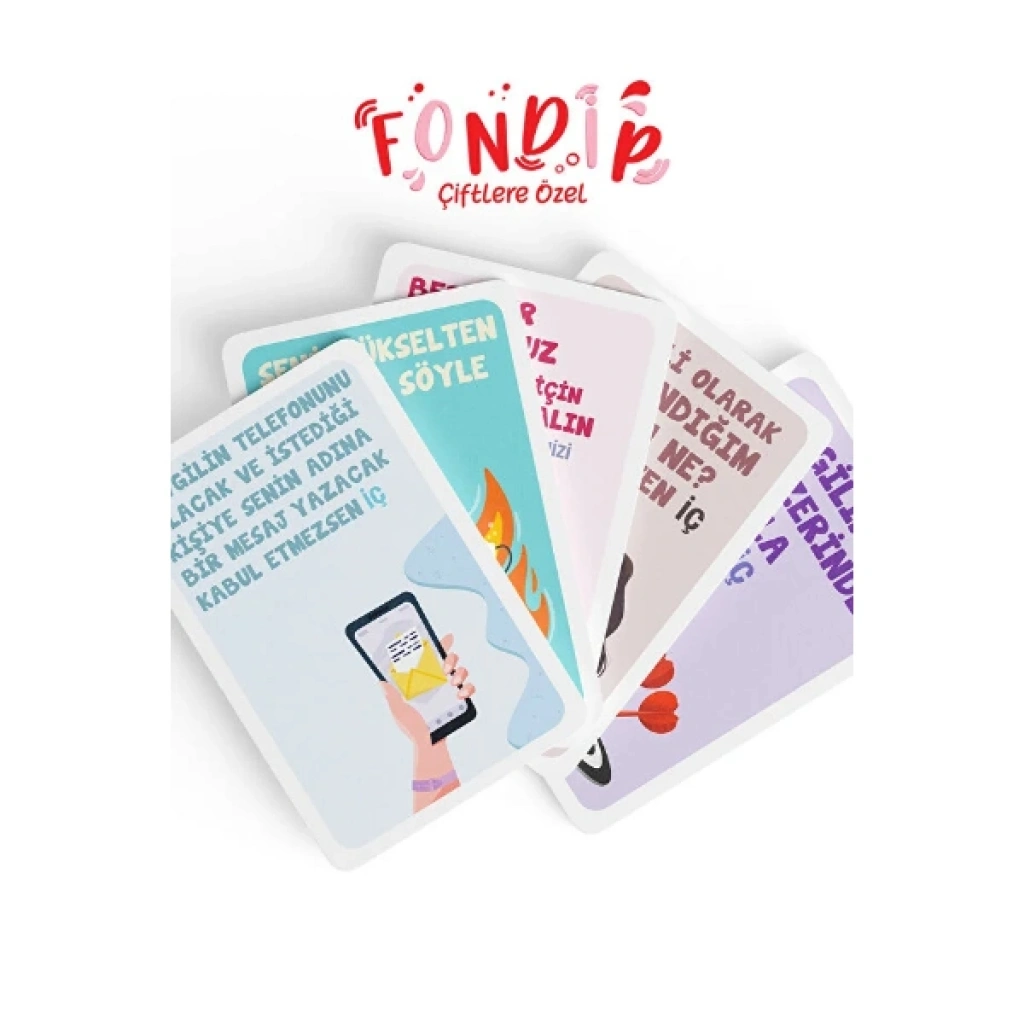FONDİP! ÇİFTLERE ÖZEL KART OYUNU Ürün ÖzellikleriFondip! Çiftlere Özel, ilişkinize heyecan, tutku ve bolca kahkaha katmak için tasarlanmış interaktif bir yetişkin oyun setidir. "Dik Kafaya!" sloganıyla sunulan bu oyun, çiftlerin birbirini daha yakından tanımasını sağlarken, monotonluktan uzak, eğlence dolu bir gece geçirmelerine olanak tanır. Deste içerisinde yer alan birbirinden farklı 165 adet kart, romantik görevlerden cesur iddialara kadar geniş bir yelpazede komedi ve heyecan içeriğine sahiptir. Özellikle shot kartları ile oyunun temposu her turda artar ve sosyal etkileşimi en üst seviyeye taşır. Yeni jenerasyonun favorisi olmaya aday bu party game, sadece bir oyun değil, partnerinizle aranızdaki bağı güçlendirecek unutulmaz bir deneyim kaynağıdır. Şık pembe kutusu ve kaliteli kart basımıyla öne çıkan Fondip!, özel günlerinizi renklendirmek veya sıradan bir akşamı unutulmaz kılmak için ihtiyacınız olan her şeyi sunar.Ürün Teknik ÖzellikleriÖzellikAçıklamaÜrün AdıFondip! Çiftlere Özel Kart OyunuKart Sayısı165 Özgün Kart (Görev, İddia ve Shot Kartları)Yaş Sınırı+18 (Yetişkinlere özel içerik)Oyun TürüRomantik &; Eğlenceli Çift Oyunu / Shot OyunuKullanım AmacıPartnerler Arası Eğlence ve Sosyal EtkileşimTasarımÇiftlere Özel Temalı, Kompakt Pembe KutuÜretim YeriTürkiyePaket İçeriği1 Adet Fondip! Çiftlere Özel Kart Oyunu (165 Adet Kart)
