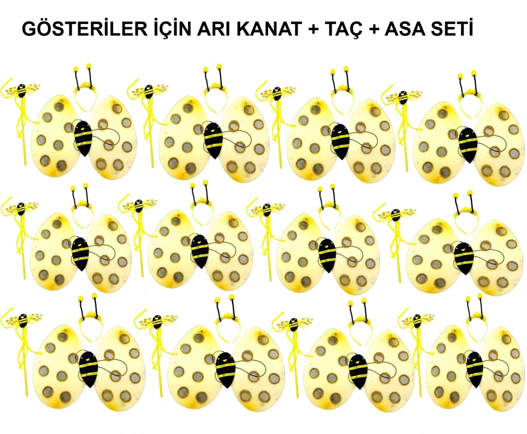 Okul Gösterileri için Arı Seti 12 Adet - Taç, Kanat, Asa