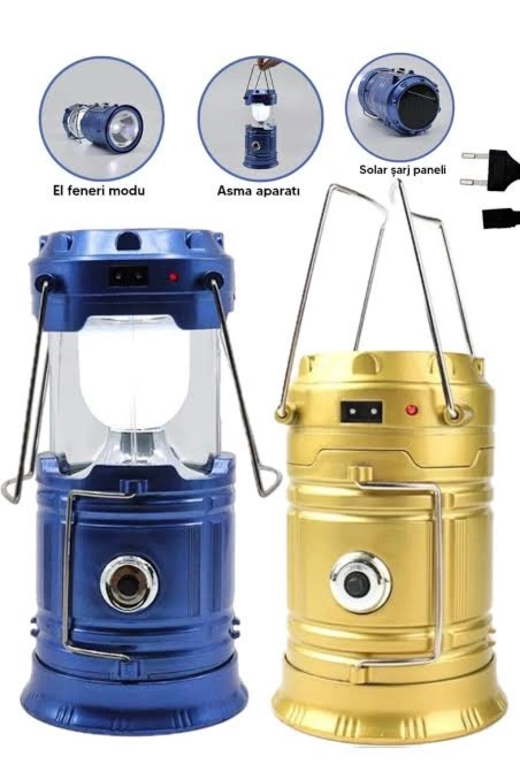 GÜNEŞ ENERJİLİ ÇOK FONKSİYONLU KAMP FENERİDoğanın keyfini çıkarırken güvenle aydınlanmanızı sağlayacak olan güneş enerjili çok fonksiyonlu kamp feneri, yenilikçi tasarımı ve işlevselliği ile öne çıkar. Çok yönlü şarj sistemi sayesinde güneş enerjisi, USB veya priz bağlantısı ile kolayca şarj edilebilir. Ergonomik tasarımı ve açılıp kapanır yapısıyla kullanımı son derece kolaydır. Askılığı sayesinde istediğiniz yere asabilir ve çift taraflı tutma kulpu ile taşıması pratiktir.Özellikler:Ergonomik Tasarım:Kullanımı kolay olan açılıp kapanır tasarımı ve çift taraflı tutma kulpuyla, herkesin rahatlıkla kullanabileceği bir üründür.Güneş Enerjisi ve Çok Fonksiyonlu Şarj Sistemi:Güneş enerjisi, USB veya priz bağlantısı ile şarj olabilme özelliği, her zaman ve her yerde güvenilir bir aydınlatma sağlar.LED Aydınlatma:Beyaz ışık rengine sahip LED lambası, etrafınızı 16 saate kadar aydınlatırken enerji tasarrufu sağlar.Taşınabilirlik:Kompakt boyutu (13cm * 9 cm) ve hafif yapısıyla her yere kolayca taşınabilir ve istenilen yere asılabilir.Çoklu Kullanım:USB çıkışı, telefon veya benzeri cihazları şarj etme imkanı sunar, böylece kamp sırasında iletişimde kalmak daha da kolaylaşır.Paket İçeriği1 adet güneş enerjili çok fonksiyonlu kamp feneri1 adet şarj kablosuGüneş enerjili çok fonksiyonlu kamp feneri, doğa tutkunları ve kamp severler için ideal bir aydınlatma çözümü sunar. Hem pratik hem de çevre dostu olan bu fener, her zaman ve her yerde güvenilir bir aydınlatma sağlayarak maceranızı daha keyifli hale getirir.