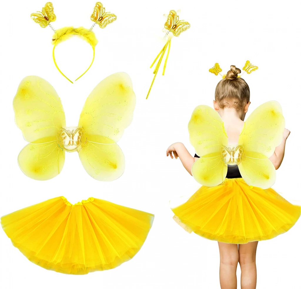 SARI KELEBEK KOSTÜMÜ ÇOCUK 4 PARÇA SETÜrün ÖzellikleriMalzeme: Yumuşak ve rahat, kaliteli kumaş.Set İçeriği:1 Adet Sarı Kelebek Kanat1 Adet Sarı Tül Etek1 Adet Sarı Antenli Taç1 Adet Sarı Kelebek MaskesiEbatlar: Çocuk bedeni için uygun, esnek ve rahat.Renk: Sarı ve siyah detaylar.Kullanım Alanı: Parti, kostüm etkinlikleri, Halloween, doğum günü kutlamaları.Özellikler: Kolay giyilip çıkarılabilen, hafif ve rahat bir kostüm.Paket İçeriği1 Adet Sarı Kelebek Kanat1 Adet Sarı Tül Etek1 Adet Sarı Antenli Taç1 Adet Sarı Kelebek Maskesi