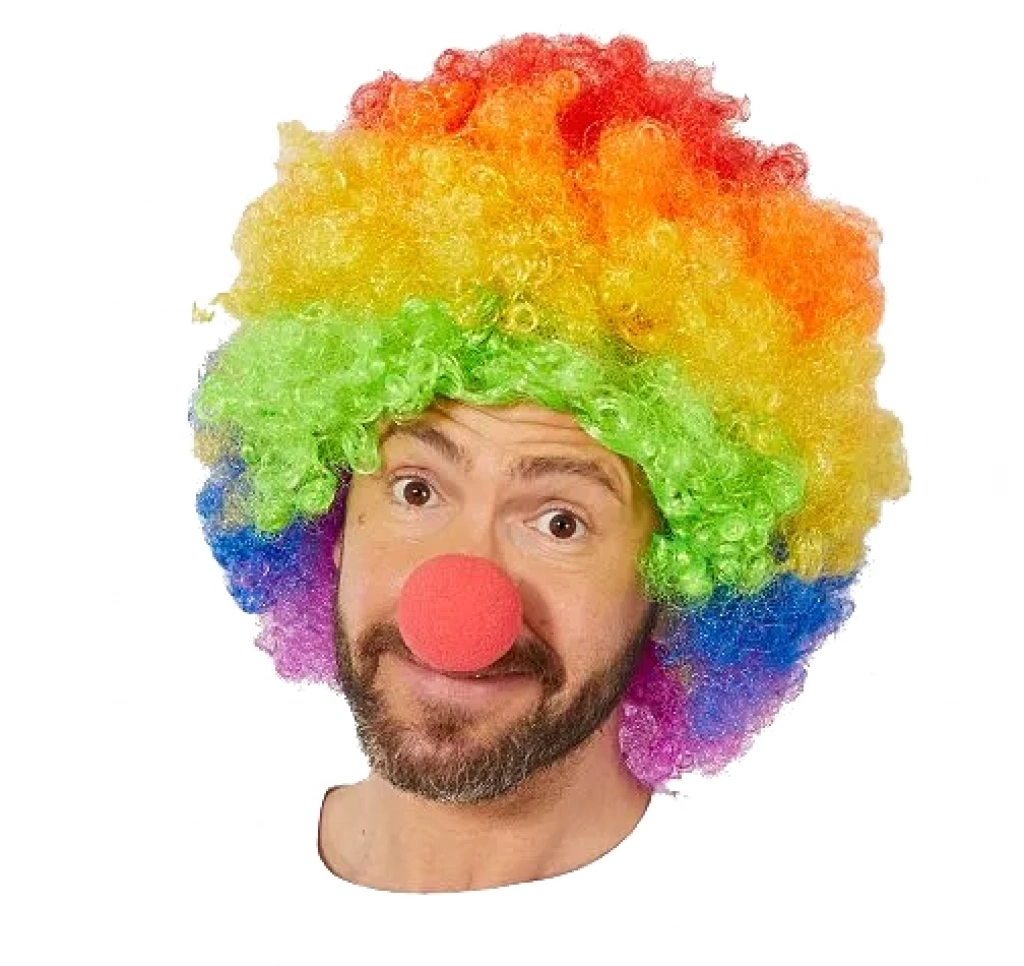 GÖKKUŞAĞI AFRO PERUK VE KIRMIZI SÜNGER BURUNÜrün ÖzellikleriRenkli gökkuşağı desenli afro perukKırmızı sünger burun ile eğlenceli kombinasyonToplam ağırlık: 120 grParti, kostüm etkinlikleri ve temalı kutlamalar için idealHafif ve rahat kullanımYüksek kaliteli malzeme ile dayanıklı yapıPAKET İÇERİĞİ1 adet gökkuşağı afro peruk1 adet kırmızı sünger burun