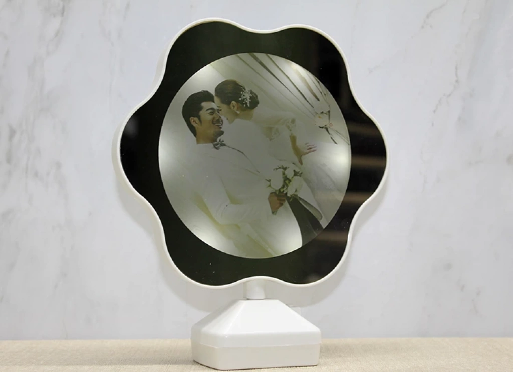 • LED'Lİ SİHİRLİ AYNA ÇERÇEVE MODEL 6Ürün ÖzellikleriLedli sihirli ayna çerçeve, özel LED ışıklandırma sayesinde fotoğrafı vurgulayan şık bir tasarıma sahiptir. Işıklar açıldığında, fotoğrafın etrafındaki detaylar daha belirgin hale gelir. Bu çerçeve, ev dekorasyonu için harika bir seçim olup, özellikle düğün, nişan veya özel anları saklamak için idealdir. Şık ve modern tasarımı ile her ortama uyum sağlar. Aynalı yapı, fotoğrafın etrafını çevreleyen güzel bir etki yaratır.Paket İçeriği1 Adet Ledli Sihirli Ay