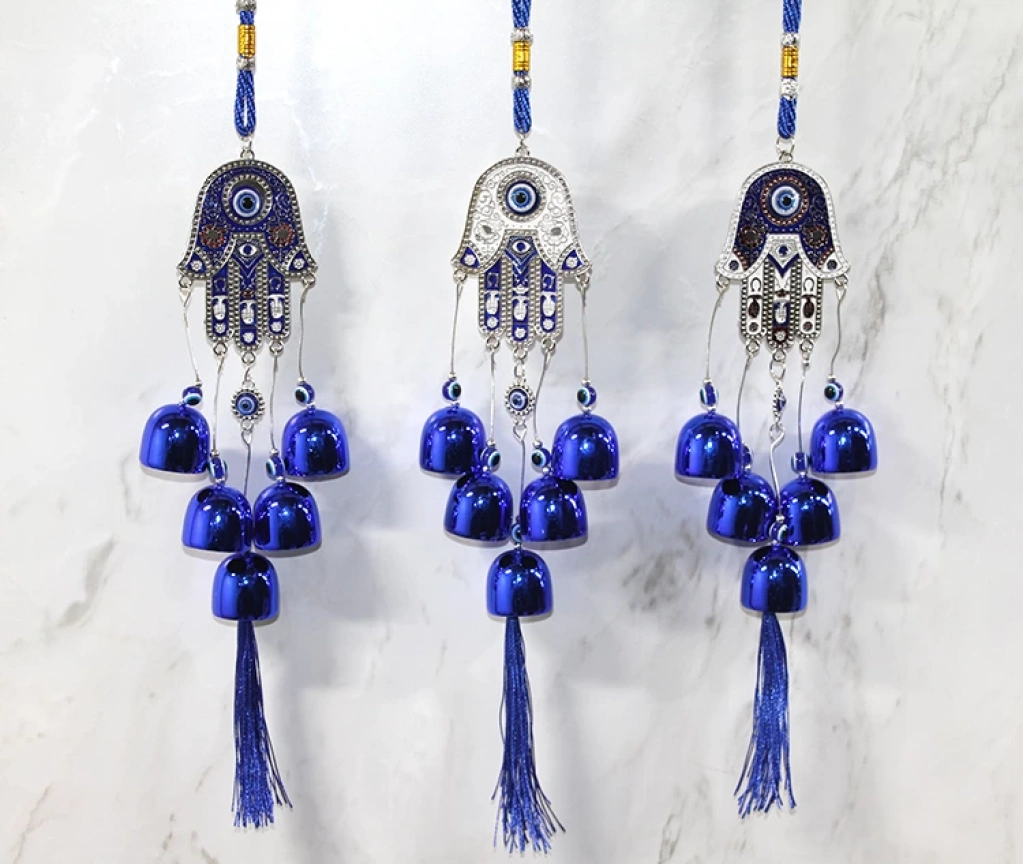 METAL NAZAR BONCUĞU ÇAN MODEL 19Ürün ÖzellikleriMetal Nazar Boncuğu Çan Model 19, geleneksel nazar boncuğu sembolüyle süslenmiş dekoratif bir çan modelidir. Metal malzemeden üretilmiş olup, dayanıklı ve uzun ömürlü bir tasarıma sahiptir. Nazar boncuğu detaylarıyla kötü enerjilere karşı koruyucu bir etkiye sahip olduğu inanılan bu çan, rüzgarın etkisiyle huzur verici bir ses çıkarır. Ev, balkon, bahçe veya kapı süsü olarak kullanılabilir, otantik ve mistik bir atmosfer oluşturur.Paket İçeriği1 Adet Metal Nazar Boncuğu Çan