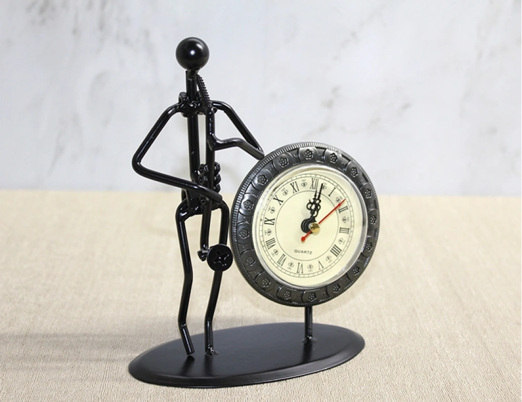 METAL SAATLİ SAKSAFON ÇALAN MÜZİSYENÜrün ÖzellikleriMetal saatli saksafon çalan müzisyen figürü sanatsal tasarımıyla dekoratif masa saati olarak kullanılabilir. 18x14 cm boyutunda olan ürün, siyah metal malzemeden üretilmiş olup modern ve estetik görünümüyle dikkat çeker. Saksafon çalan müzisyen figürü hem saat işlevi hem de dekoratif özelliğiyle ev, ofis ve çalışma alanlarında şık bir tamamlayıcı aksesuar olur. Dayanıklı yapısı sayesinde uzun süre kullanılabilir ve hediye alternatifi olarak da tercih edilmektedir.Paket İçeriği1 adet Metal Saatli Saksafon Çalan Müzisyen