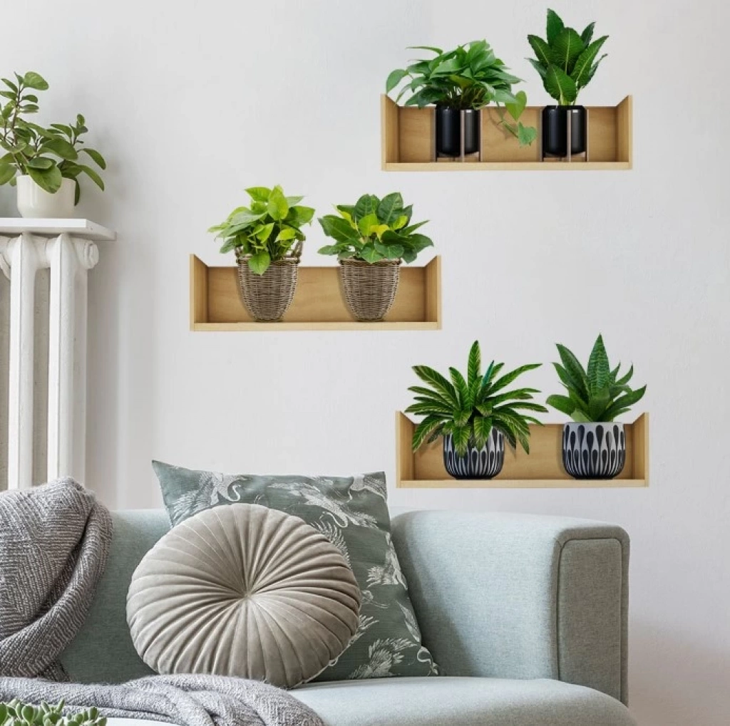 Raflı Bitki Tasarımlı Yapışkanlı Sticker 20*30 cm 3lü Set