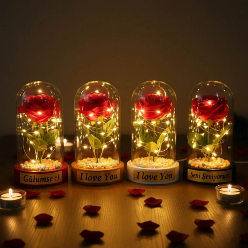 Renkli Toplu Ledli Gül Fanus