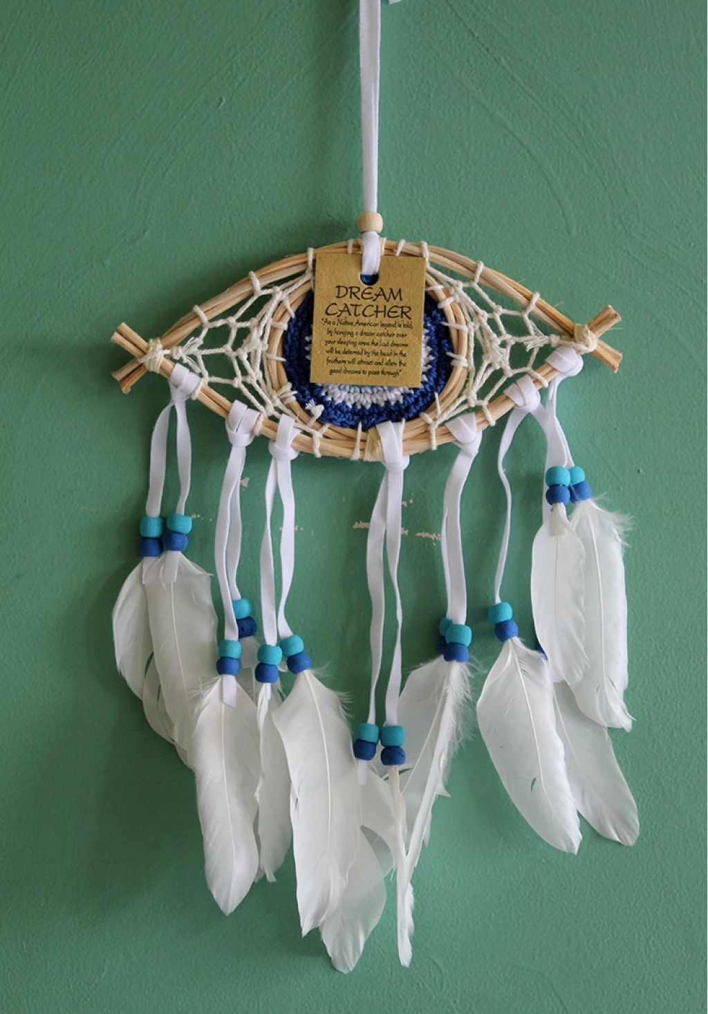 RÜYA KAPANI DREAM CATCHER GÖZ TASARIMIÜrün ÖzellikleriRüya Kapanı Dream Catcher Göz Tasarımı, göz figürü ve nazar boncuğu ile zarif bir şekilde tasarlanmış özel bir üründür. Gözün içi özenle işlenmiş iple nazar boncuğu şeklinde şekillendirilmiştir. Beyaz tüyler ve renkli boncuklar ile süslenmiş olan bu dream catcher, hem geleneksel işlevi hem de estetik görünümü ile dikkat çeker. Huzur verici ve koruyucu özelliği ile kötü rüyalardan korunmanıza yardımcı olur. Modern ve etnik dokunuşlarıyla her tür dekorasyon için mükemmel bir seçimdir. Hafif ve dayanıklı yapısı ile kolayca asılabilir.Paket İçeriği1 adet Rüya Kapanı Dream Catcher Göz Tasarımı.