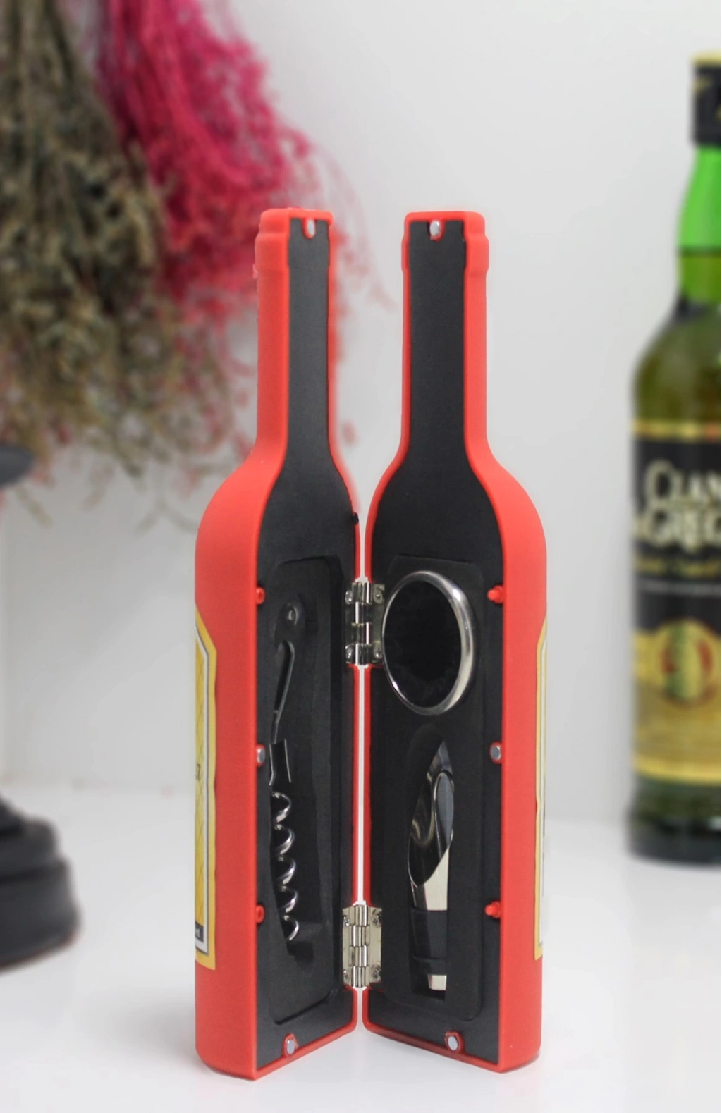 Şişe Tirbuşon Seti Küçük Boy Kırmızı