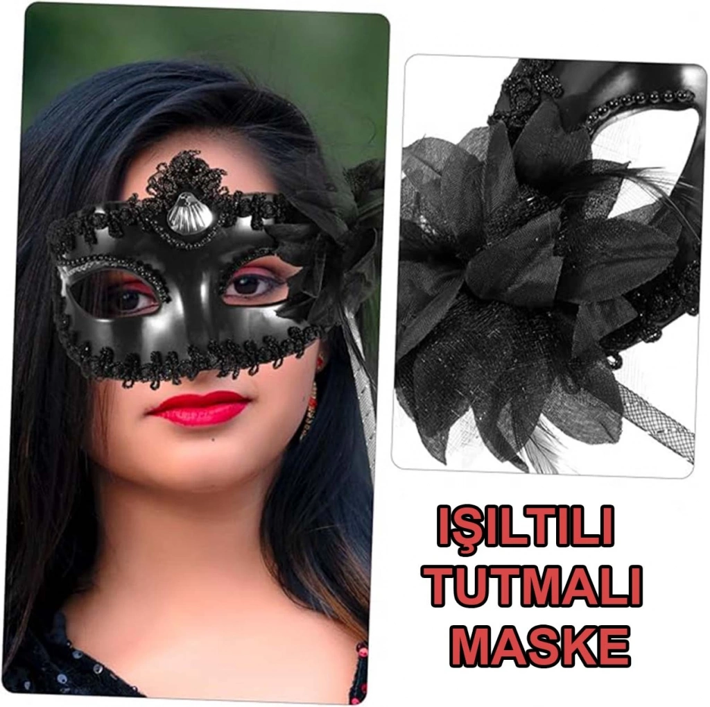 Siyah Işıltılı Tutmalı Fotoğraf Çekimi Maskesi