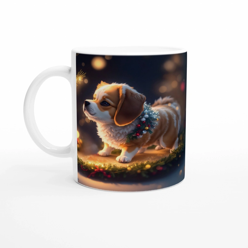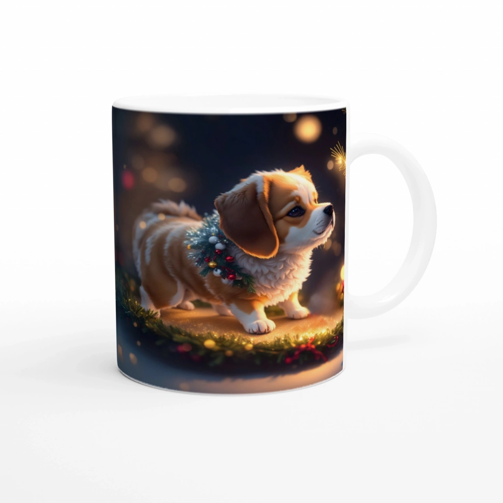 Işıl Işıl Süslenmiş Noel Köpeği Baskılı Kupa Bardak