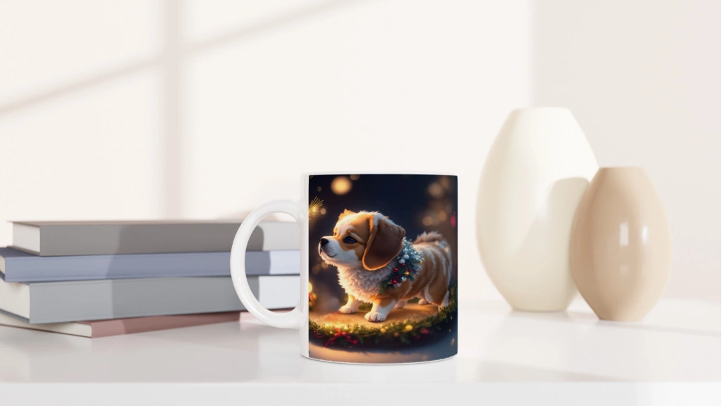 Işıl Işıl Süslenmiş Noel Köpeği Baskılı Kupa Bardak, yılbaşı dekorasyonuna neşeli bir dokunuş arayanlar için hem kullanışlı hem de estetik bir hediye seçeneğidir.