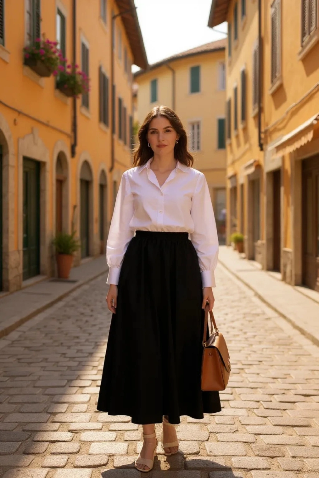 • Minimalist Tarz: Siyah eteği bej tonlarında uzun gömlek, sade bir şal ve düz babetlerle tamamlayarak zahmetsiz bir şıklık oluşturabilirsiniz.