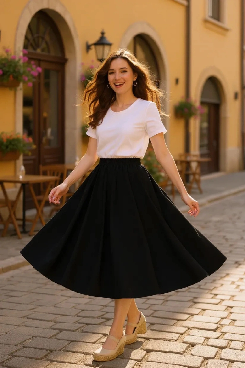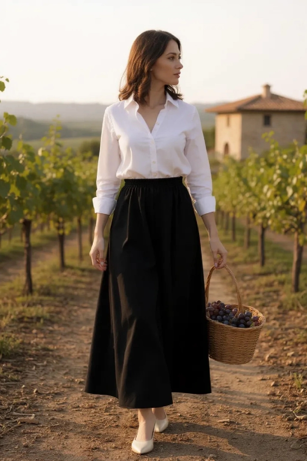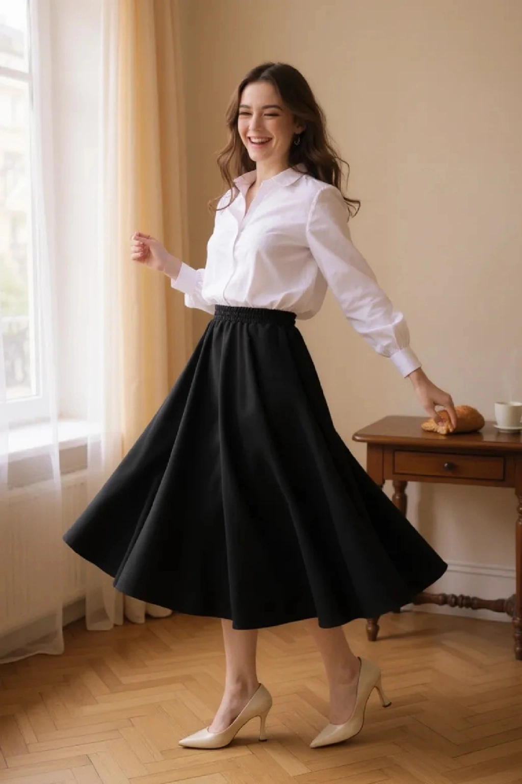• Klasik & Şık Kombin: Siyah eteği beyaz uzun kollu gömlek, ipek şal ve topuklu ayakkabı ile kombinleyerek davetlerde sofistike bir görünüm elde edebilirsiniz.