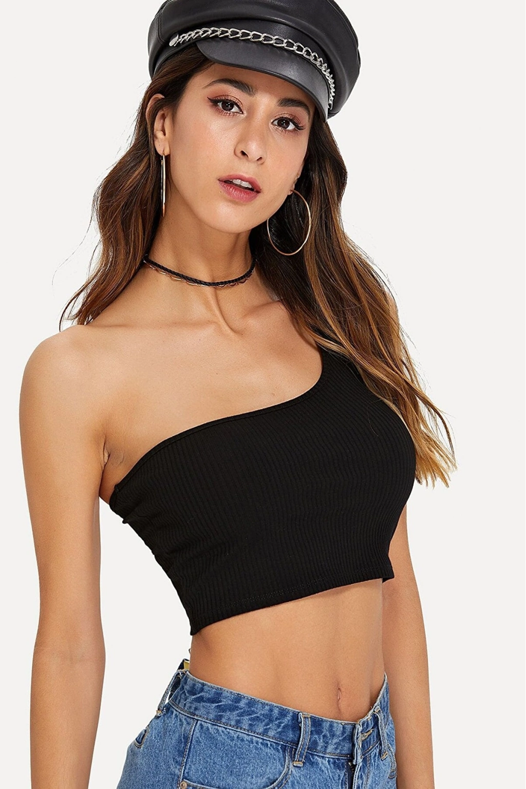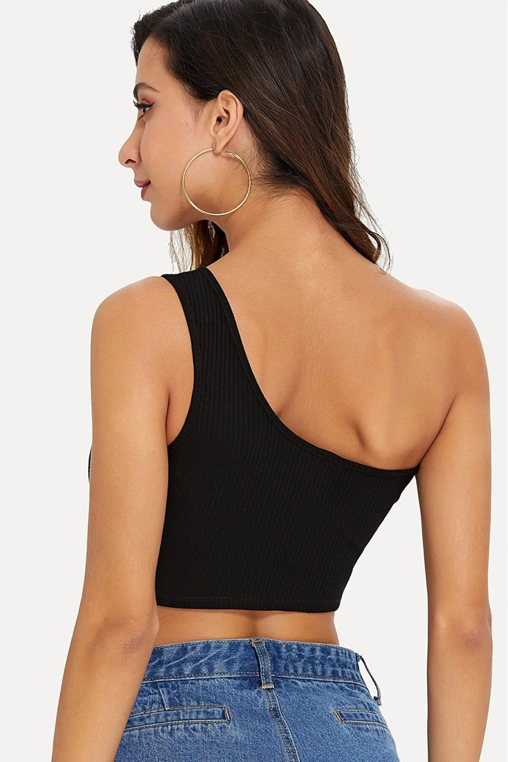 Kadın Siyah Tek Omuz Crop Büstiyer – Modern ve Şık Tasarım